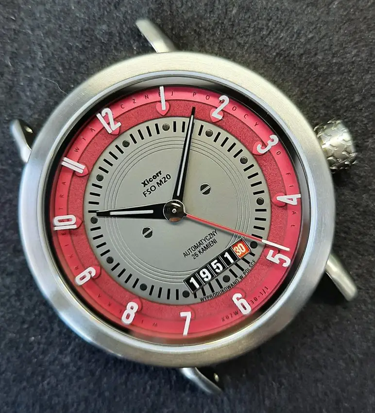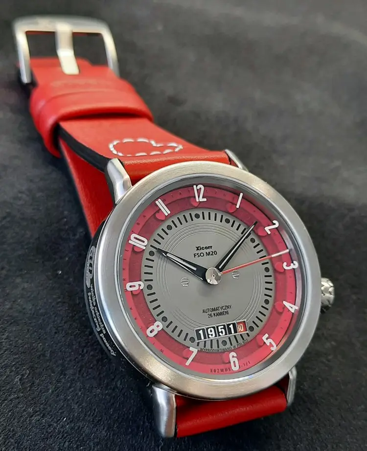 To Xicorr FSO M20, czyli jeden z rodziny modeli powstałych niejako w hołdzie dla samochodu, który był zaczątkiem odradzania się po wojnie polskiej motoryzacji w zakresie samochodów osobowych, czyli Warszawy. Jest kilka wersji zegarków Xicorr poświęconych temu pojazdowi, a różnią się one detalami, opierając się na wspólnej, bardzo charakterystycznej i mocno indywidualnej koncepcji stylistycznej. To zegarek nie do pomylenia z żadnym innym.