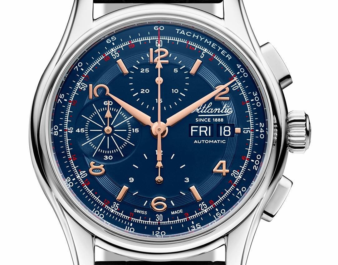 Nowość Atlantic, model Worldmaster 1888 Automatic Chronograph Day-Date z tarczą wypełnioną po brzegi