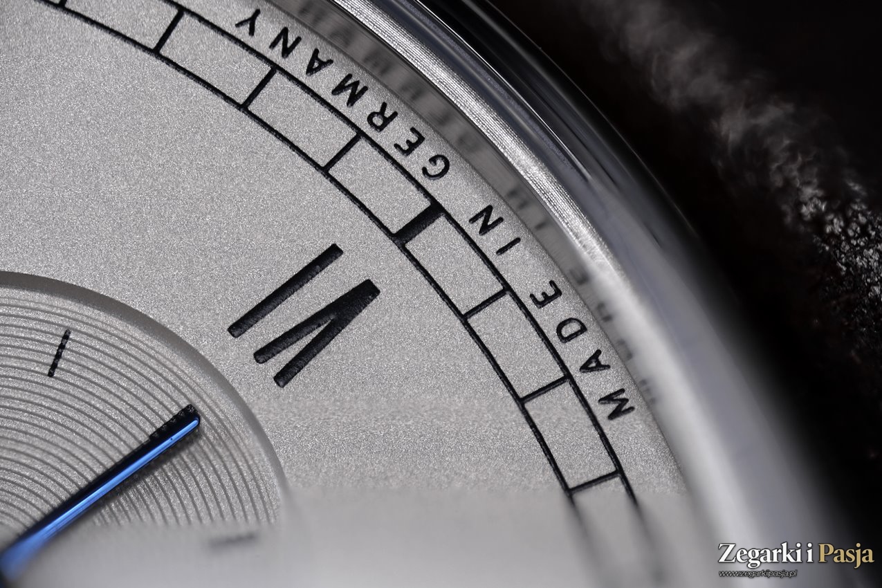 Precyzja wykonania tarczy może robić wrażenie, nawet jeśli oglądamy ją w całkiem sporym powiększeniu. Indeksy godzinowe są smukłe, a ich krawędzie regularne. To samo dotyczy wszelkich napisów umieszczonych na tarczy, a także kresek znajdujących się na żłobionej powierzchni subtarczy.