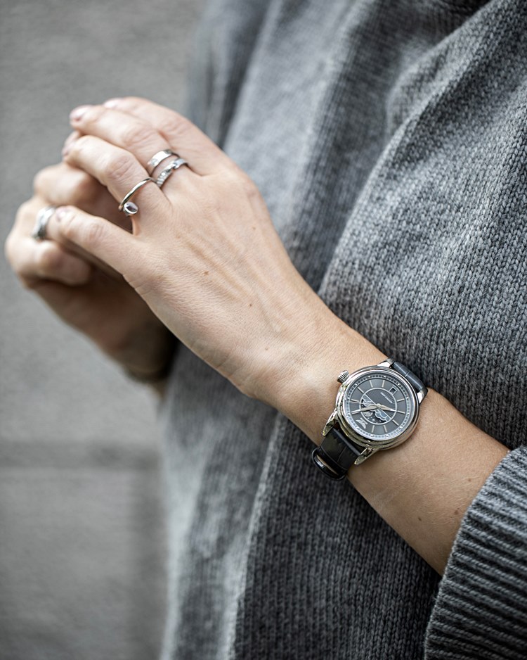 Eksponując subtelne elementy stylistyki i tworząc zegarek na wysokim poziomie jakości wykonania, ale i z ciekawą kompozycją, która może przypaść do gustu niejednej kobiecie. Misterne wykończenie tarczy i sposób zaprezentowania wskazań faz księżyca także jest bardzo mocnym punktem na tle konkurencji, bo w tym przedziale cenowym takie podejście chyba się nie zdarza.