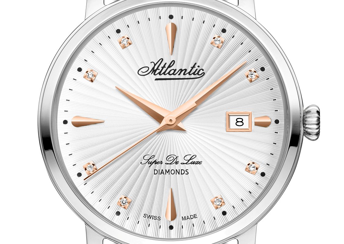 Stylistyka retro jest wyraźnym motywem przewodnim nowości Atlantic, a „diamentowe” indeksy podkreślają elegancję tego zegarka, czyniąc go piękną i zarazem użyteczną biżuterią, nawet do użytku na co dzień.