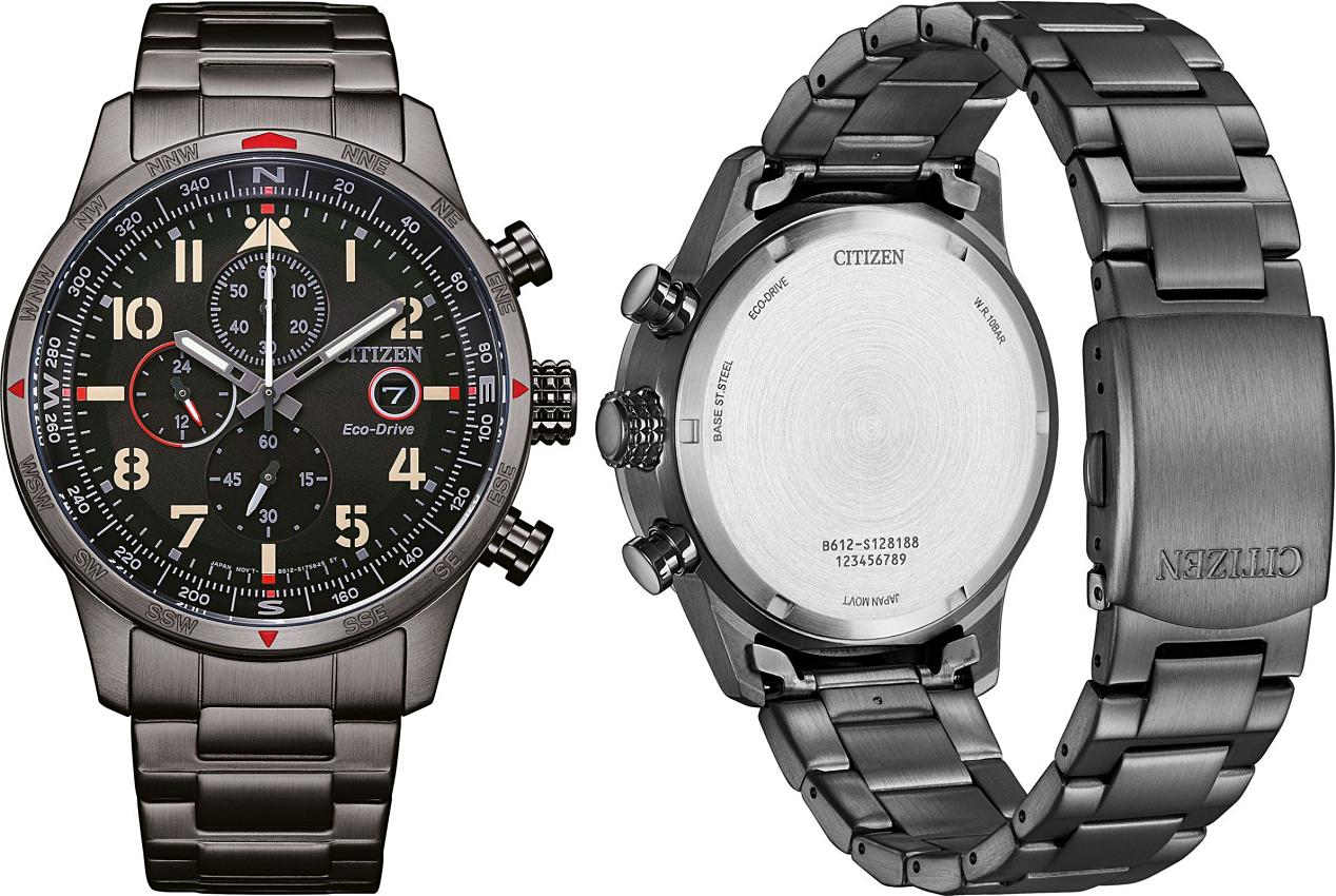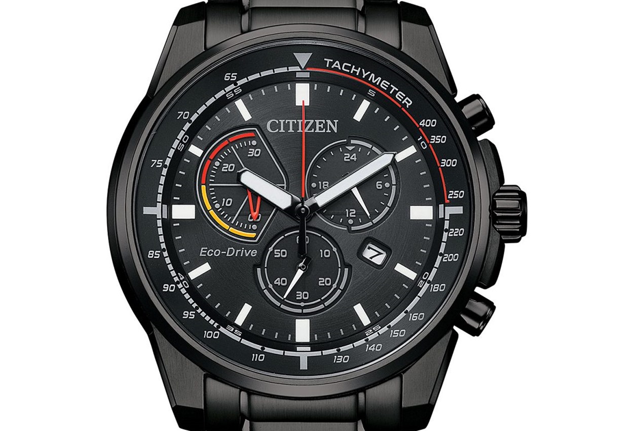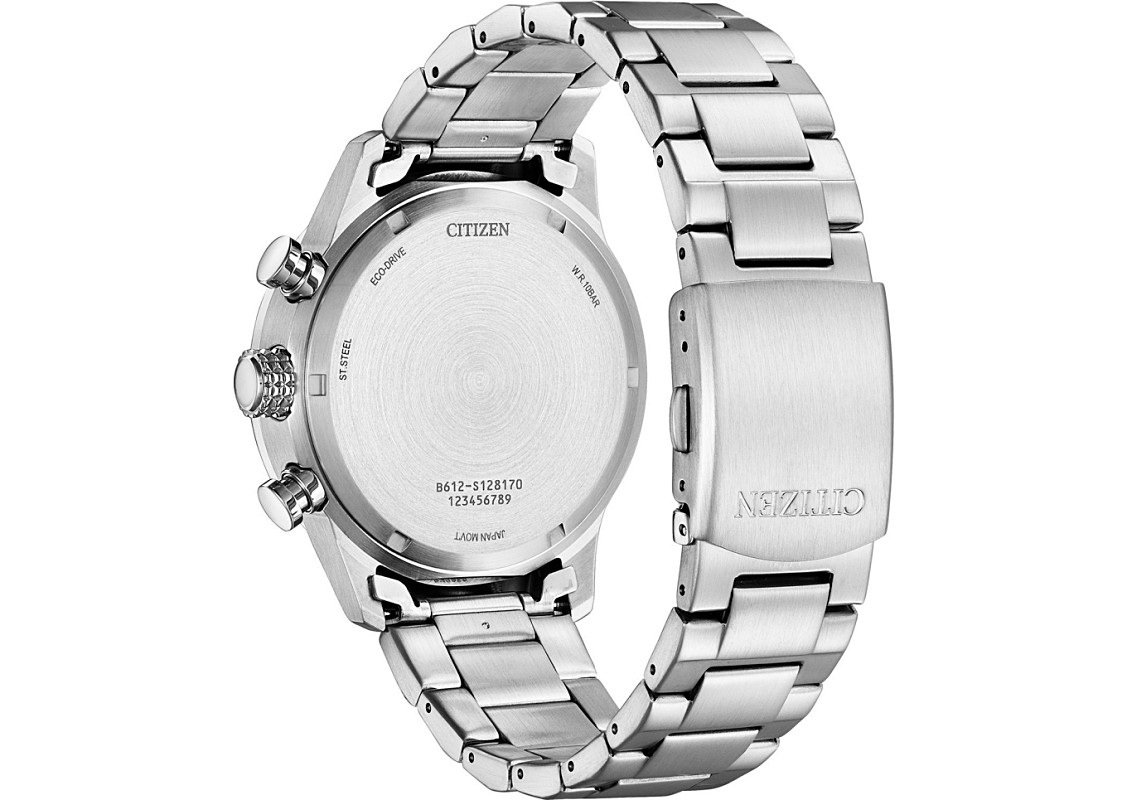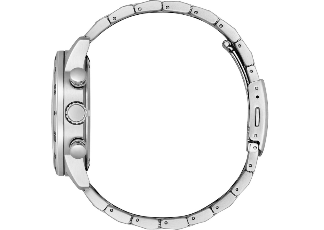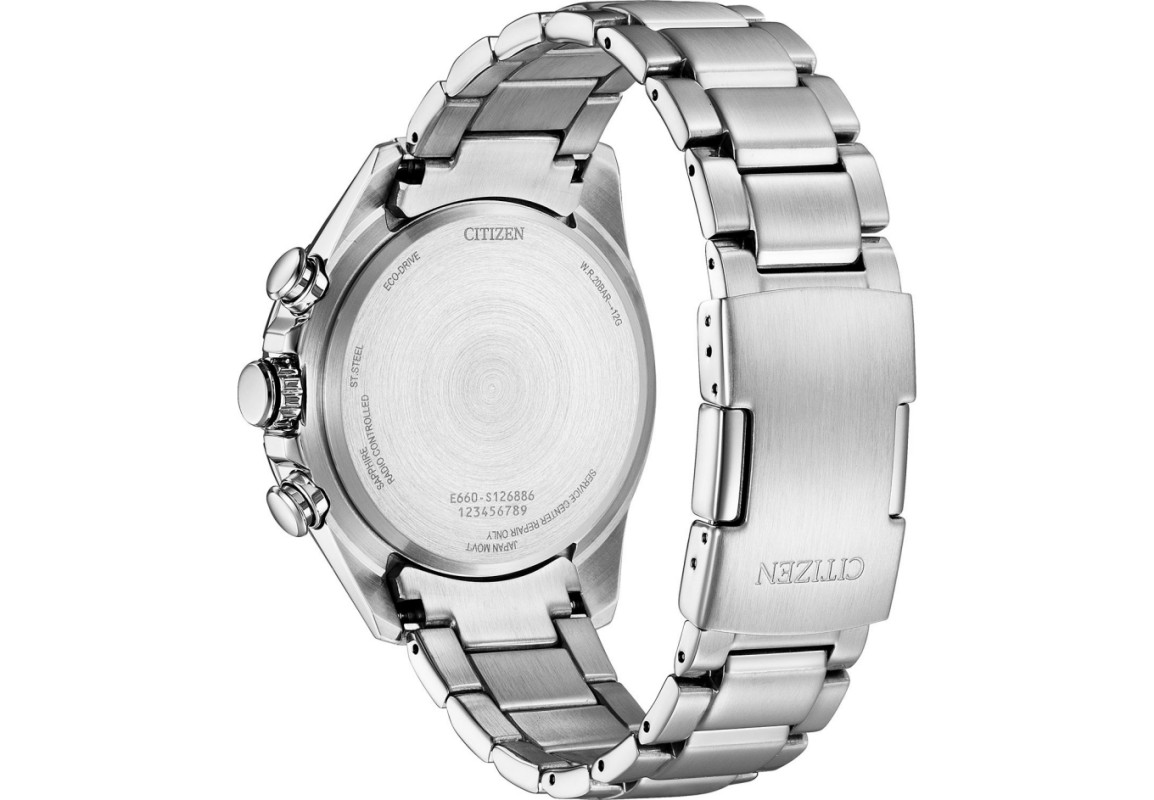 Citizen CA0810 ma okrągłą kopertę z łagodnie wyprowadzonymi uszami i sporym rozmiarze, bo ma ona 44 mm średnicy. Wyraziste wskazówki zapewniają dobrą czytelność, mimo, że na tarczy jest wiele wskazań dodatkowych. Do wyboru jest wariant z tarczą w kolorze czarnym, niebieskim lub szarym. „Na pokładzie” oczywiście system Eco-Drive, oraz stoper ze wskazaniem sekund i minut, oraz tarcza na godzinie 9. pokazującą nam czas w trybie 24 godzinnym. Datownik na godzinie 3. uzupełnia listę funkcji dodatkowych.