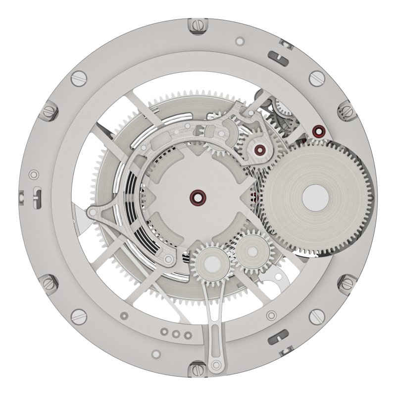 Ta komplikacja konstrukcji mechanizmu znajduje się w centralnej części zegarka.