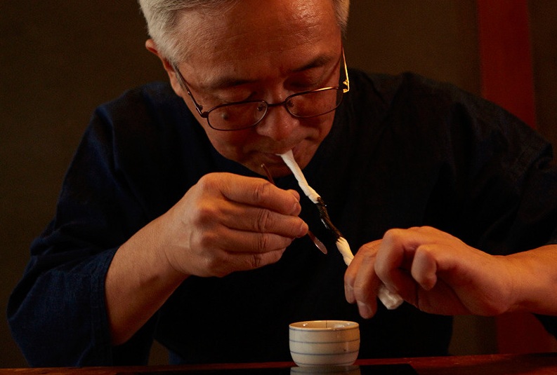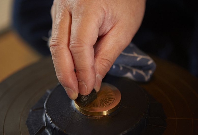 W kolorze zielonym, lakierowana techniką Urushi stosowaną przez mistrza Tamurę.