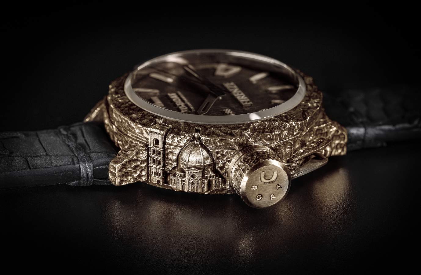 Widoczne są: most Ponte Vecchio - rozciągający się na całej długości boku koperty, oraz katedra Santa Maria del Fiore z przeciwnej strony, które zdobią zegarek poświęcony Florencji. Koloseum zostało także wyrzeźbione i całkowicie zajmuje jeden bok obudowy, z drugiej strony jest fasada Bazyliki Świętego Piotra. Oba te misterne wizerunki zostały przedstawione na powierzchniach koperty w zegarku poświęconemu Rzymowi.