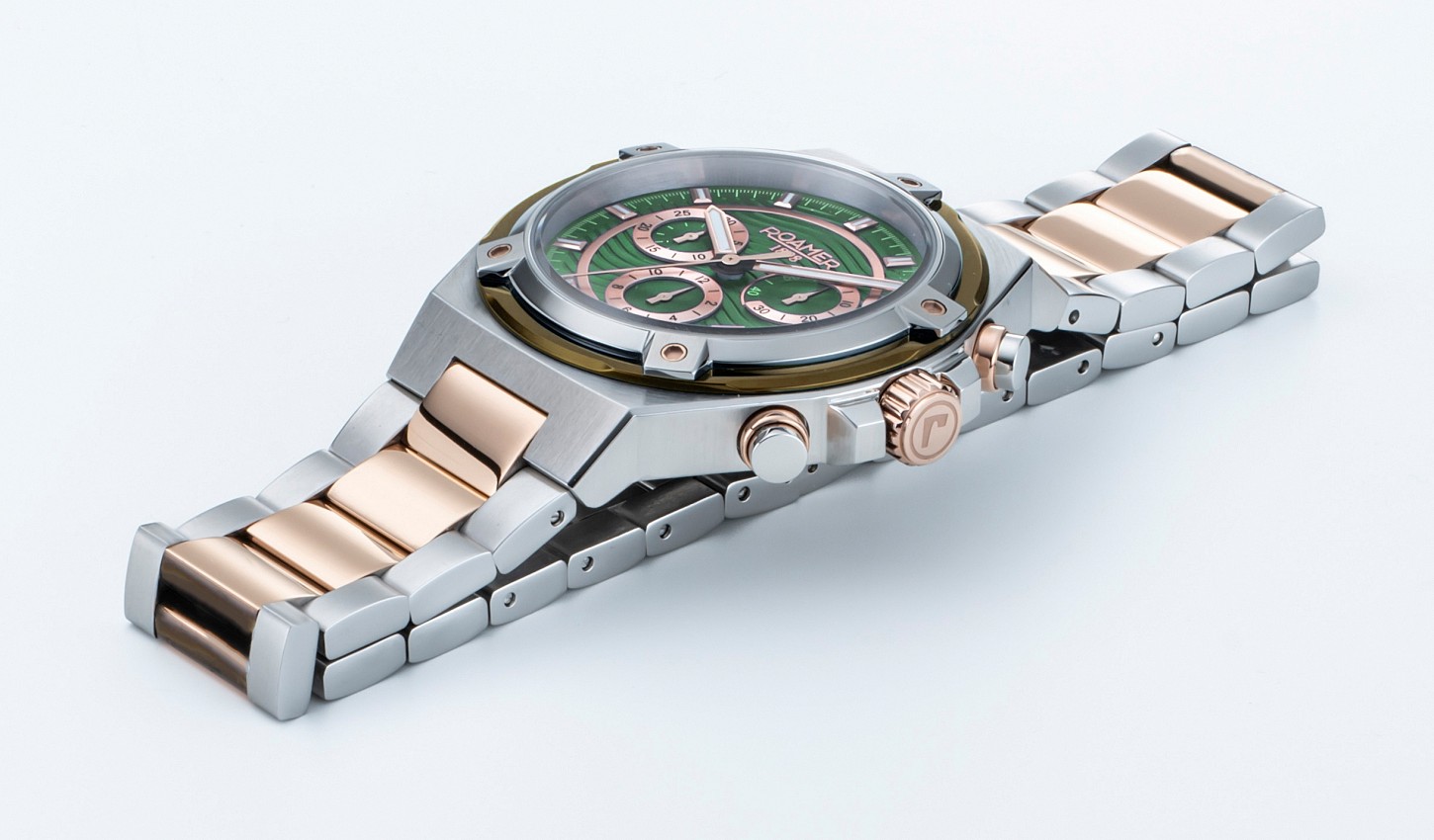 Potencjalni użytkownicy mają do wyboru pięć wersji tego modelu zegarka. Dwa warianty z tarczami w kolorze niebieskim i czarnym zestawione zostały z kopertami i bransoletami wykonanymi ze stali, są bez powłok kolorystycznych. Przygotowano także trzy wersje z tarczami w kolorach niebieskim, zielonym i opalizująco brązowym, które zestawiono z kopertami bi-color, czyli mającymi dodatki w kolorze różowego złota. Z wykorzystaniem techniki IP powłoką pokryte są wówczas także: koronka, kołnierze przycisków stopera, śrubki lunety oraz wskazówki i inskrypcje na tarczy. Tak samo wykończono środkowy rząd polerowanych ogniw bransolety. Ale to nie wszystko.