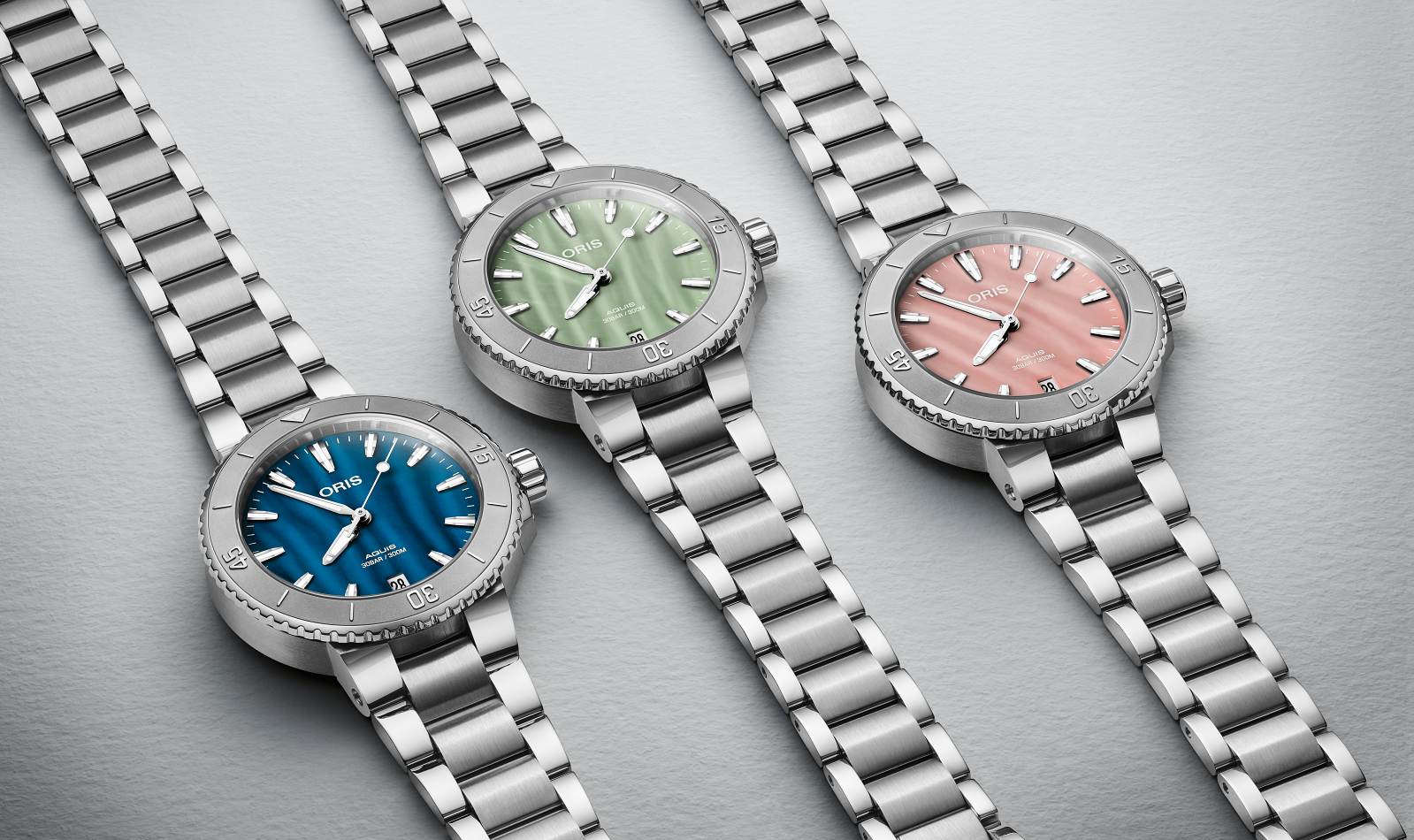 Te zegarki mechaniczne typu diver, tak jak inne z serii Aquis, mają wysoką klasę wodoszczelności, bo aż do 30 bar (300 metrów). Opisywany model Oris Aquis Date 36,5mm został przedstawiony na Geneva Watch Days 2022 w postaci nowego trio, trzech wersji.