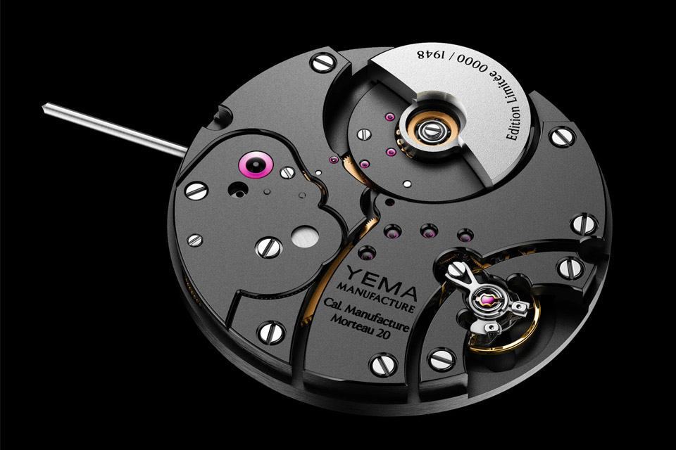 Chodzi naciąg automatyczny, popularny oczywiście, ale realizowany za pomocą mikro-rotora. Mechanizm ten to Yema CMM.20 (MANUFACTURE MORTEAU 20), limitowana seria funkcjonująca pod nazwą „Limited Edition 1948 timepieces”.