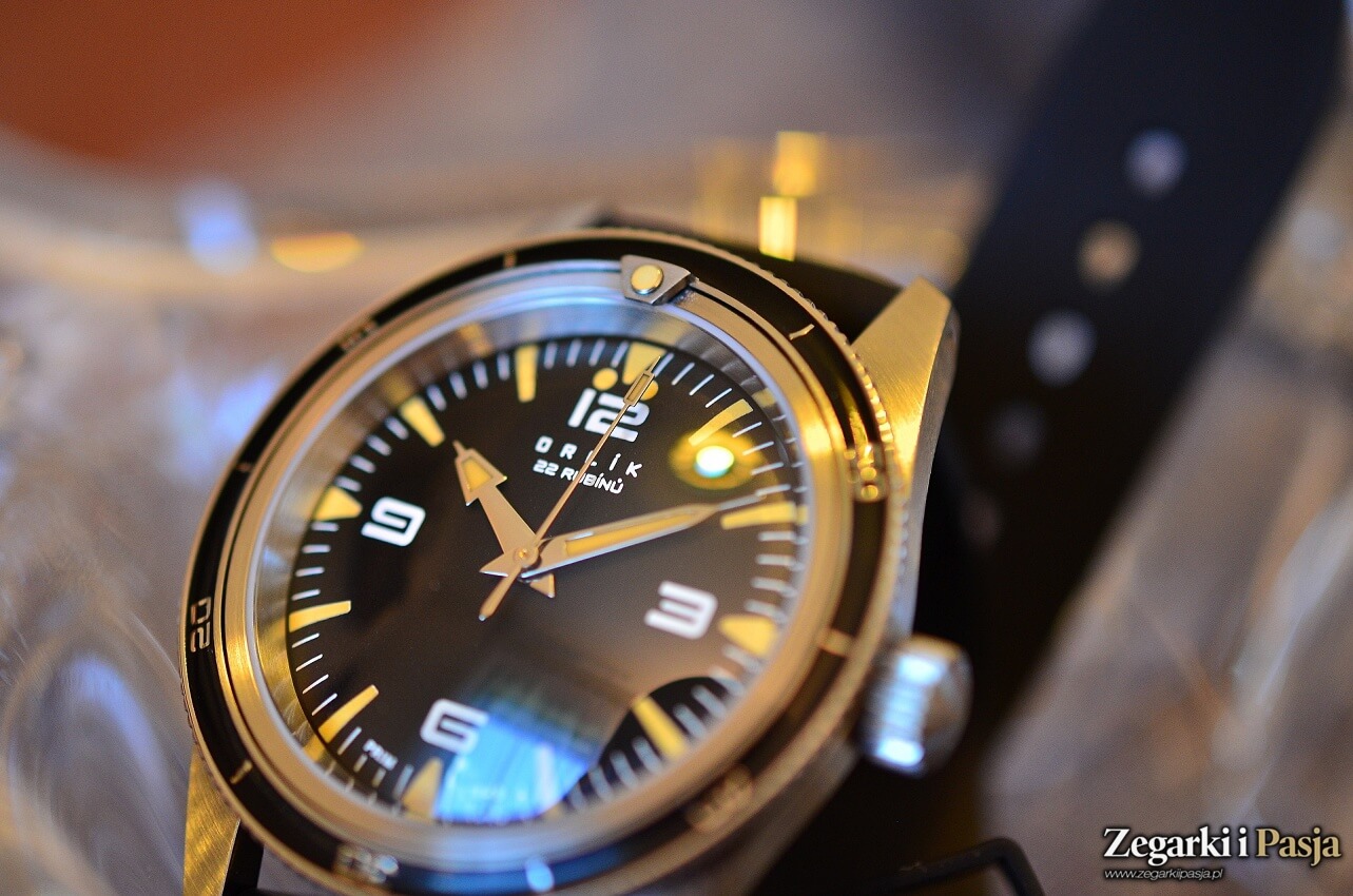 W mojej ocenie, to zegarek wręcz świetny. I mówię to, mimo że średnica jego koperty wynosi 38 mm, czyli ma wielkość, którą jeszcze niedawno w ogóle nie brałbym pod uwagę, gdyż uważałbym ją za zbyt małą dla mnie. Orlik II ma okrągłą kopertę z bardzo płynnie wyprowadzonymi uszami, które mocno zwężają się ku końcom. Cała powierzchnia obudowy jest precyzyjnie szczotkowana. Krawędzie są zaś wyraziste i ostre. Wysoką jakość wykonania widać już na pierwszy rzut oka. Od razu wiemy, że obcujemy z zegarkiem, który pod tym względem możemy uplasować na wysokim poziomie.