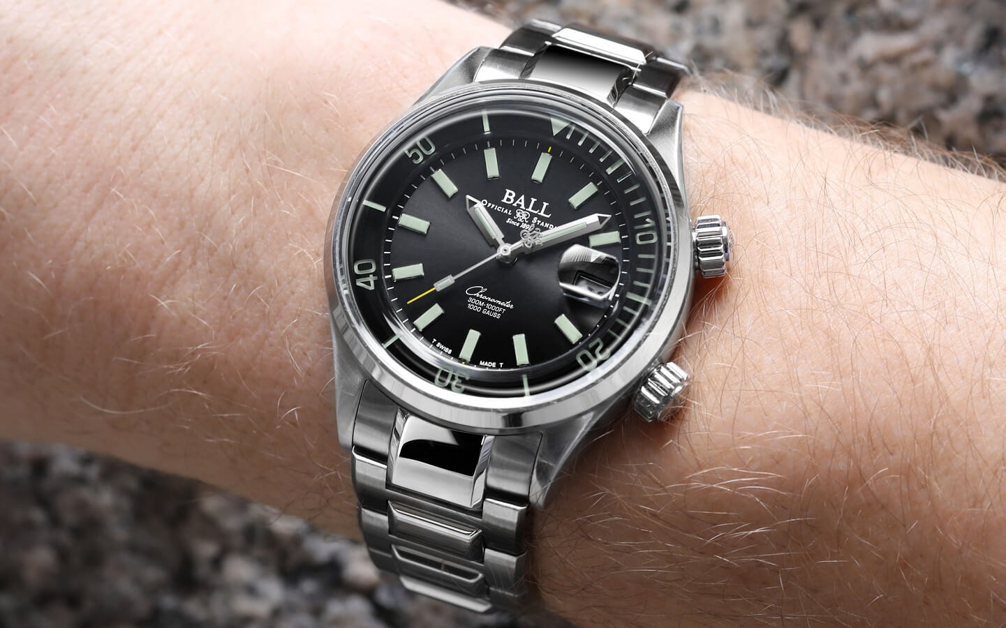 Równocześnie Engineer Master II Diver Chronometer ma bardzo rozsądne wymiary. Ten zegarek to połączenie nowoczesności, objawiającej się chociażby zastosowaniem nowoczesnych metod obróbki, sprawdzonego mechanizmu, czy też rozwiązań technicznych firmy Ball, ze stylistyką retro. Jego wygląd nawiązuje do dawnych zegarków typu kompresor, które cechowały się bardzo często właśnie obrotowymi lunetami widocznymi pod szkłem, oraz dodatkową koronką do obsługi takiego pierścienia.