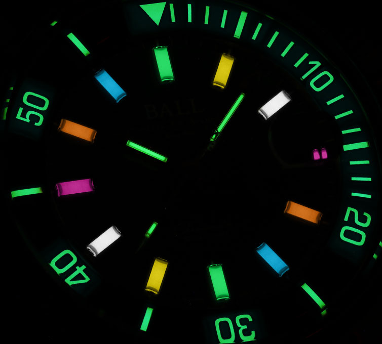 Engineer Master II Diver Chronometer jest oferowany z klasyczną mieszanką rurek emitujących światło w kolorach zielonym i żółtym, lub w nieco awangardowej wersji - z rurkami emitującym światło w barwach tęczy. Tarcza może być czarna lub niebeska.