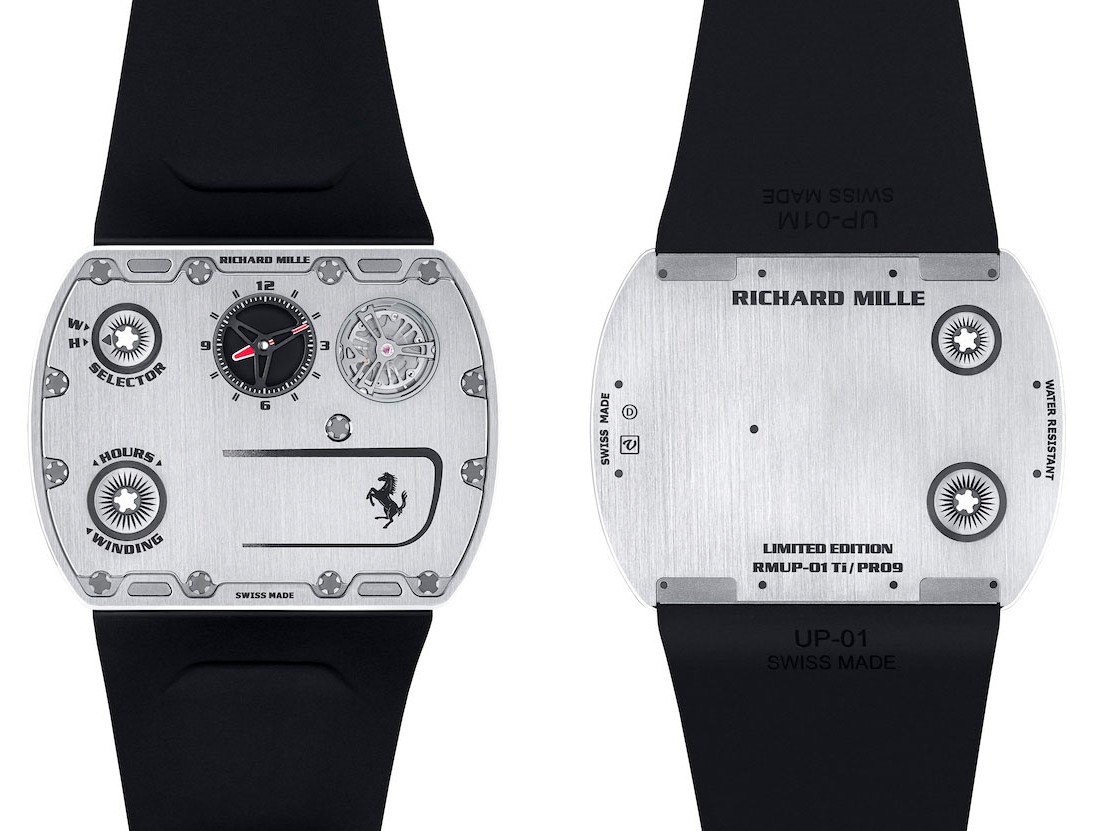 Richard Mille znany jest ze swoich zegarków o typowo sportowym charakterze, których mechanizmy mają innowacyjne rozwiązania techniczne. W 2021 roku marka ta rozpoczęła współpracę z jednym z najlepiej rozpoznawalnych na świecie producentów sportowych samochodów – firmą Ferrari. Ma to być długoterminowe partnerstwo, a RM UP-01 Ferrari jest pierwszym zegarkiem będącym jego owocem.