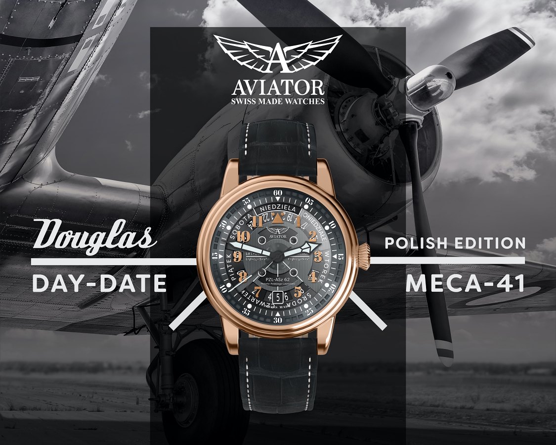Tegoroczna nowość, także z serii Douglas Day-Date, podobnie jak zegarek opisywany rok temu, jest szczególnie przyjemny dla polskich miłośników marki, ale też zegarków w ogóle. W Aviator Swiss Made Douglas Meca 41 Polish Edition znów są liczne odniesienia do Polski.