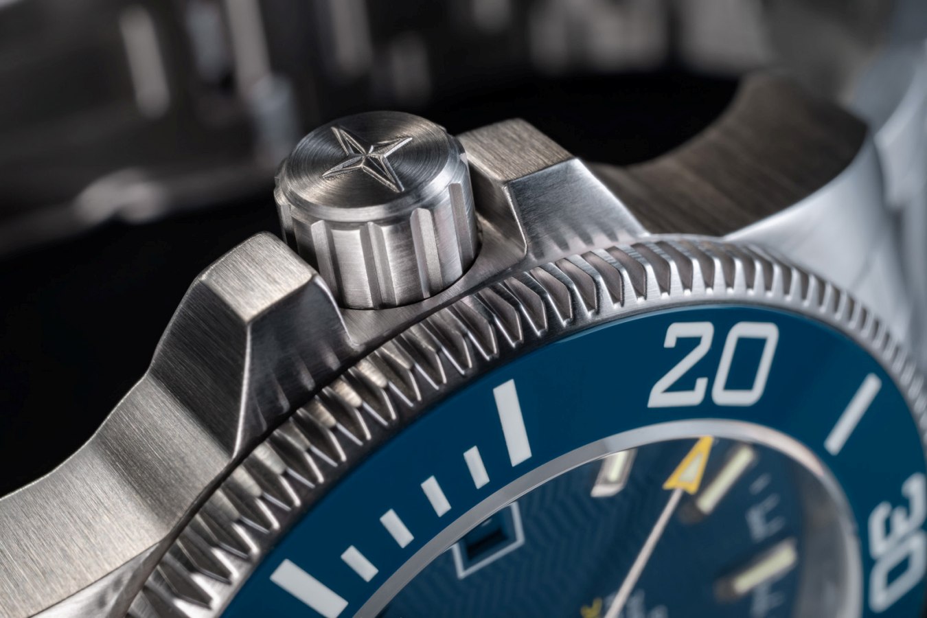 Na godzinie 11. znajduje się zakręcany zawór helowy, który jest przydatny podczas nurkowania z akwalungiem na duże głębokości, z zastosowaniem w butlach mieszanek zawierających hel. Hel może dostać się do wnętrza koperty zegarka, a zawór helowy umożliwia jego uwolnienie. Koronka zaworu jest przyozdobiona graficznym symbolem helu. Koronka główna na godzinie 3. także jest zakręcana, a jej czołową część zdobi gwiazda Davosy.