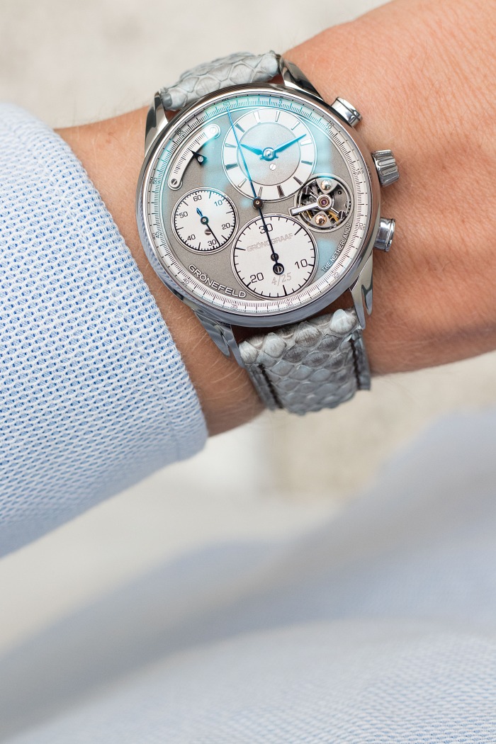 Bracia wprowadzają na rynek 2 wersje zegarka – droższą, limitowaną do 25 sztuk z kopertą z tantalu, którą (mimo wyceny na poziomie 165 tys. Euro, czyli ponad 750 000 złotych) już… wyprzedano, oraz teoretycznie standardową, choć nie wypada tak mówić o Gronefeldach, w kopercie stalowej w cenie 155 tys. euro.
