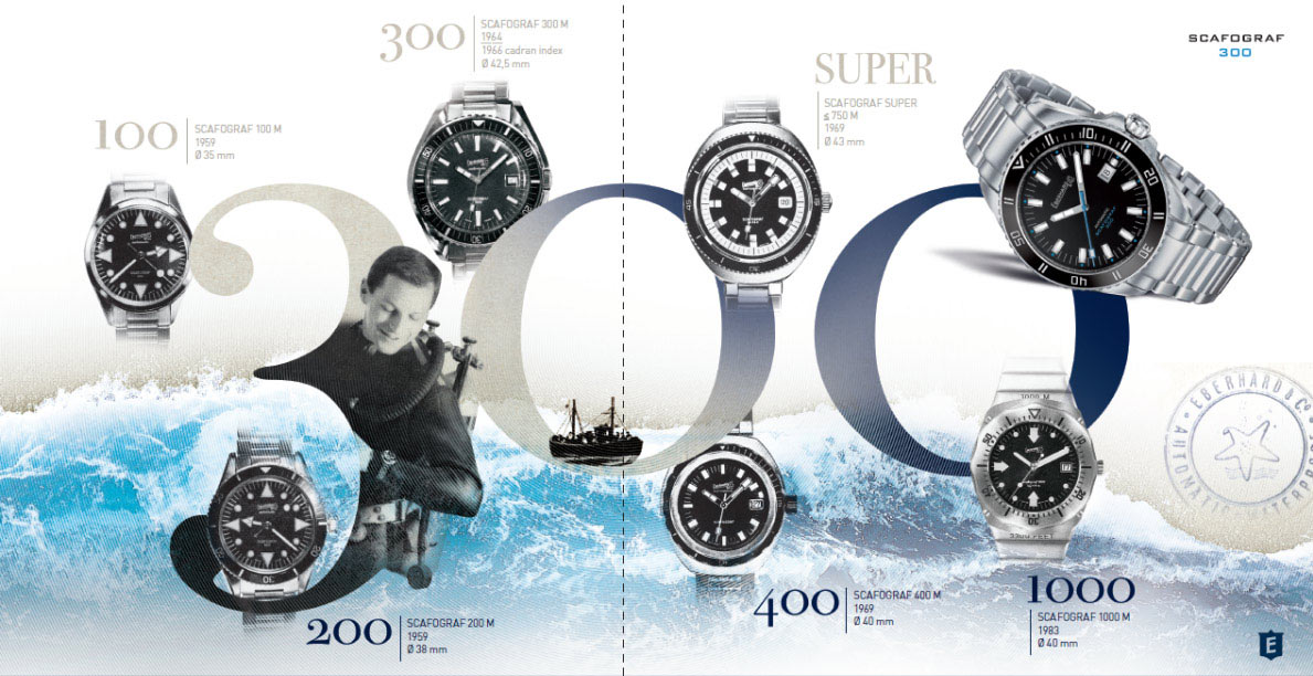 Kolekcja zegarków Scafograf firmy Eberhard & Co pojawiła się pierwotnie na rynku w 1959 roku. Mówimy więc o serii, która ma już ponad 60 lat historii. Ówcześnie była to odpowiedź marki Eberhard na rodzące się wśród społeczeństwa zainteresowanie odkrywaniem głębin i tym samym na wodoszczelne zegarki. Firma „wstrzeliła się” w rynek doskonale. Dość szybko jej produkty znalazły tak użytkowników, jak i zdobyły uznanie. Są też osiągnięcia o skali historycznej dla branży, jak model Scafograf 1000, który poziomem wytrzymałości robił ówcześnie ogromne wrażenie. Nawet dziś wodoszczelność do 1000 m to nie lada wyczyn.