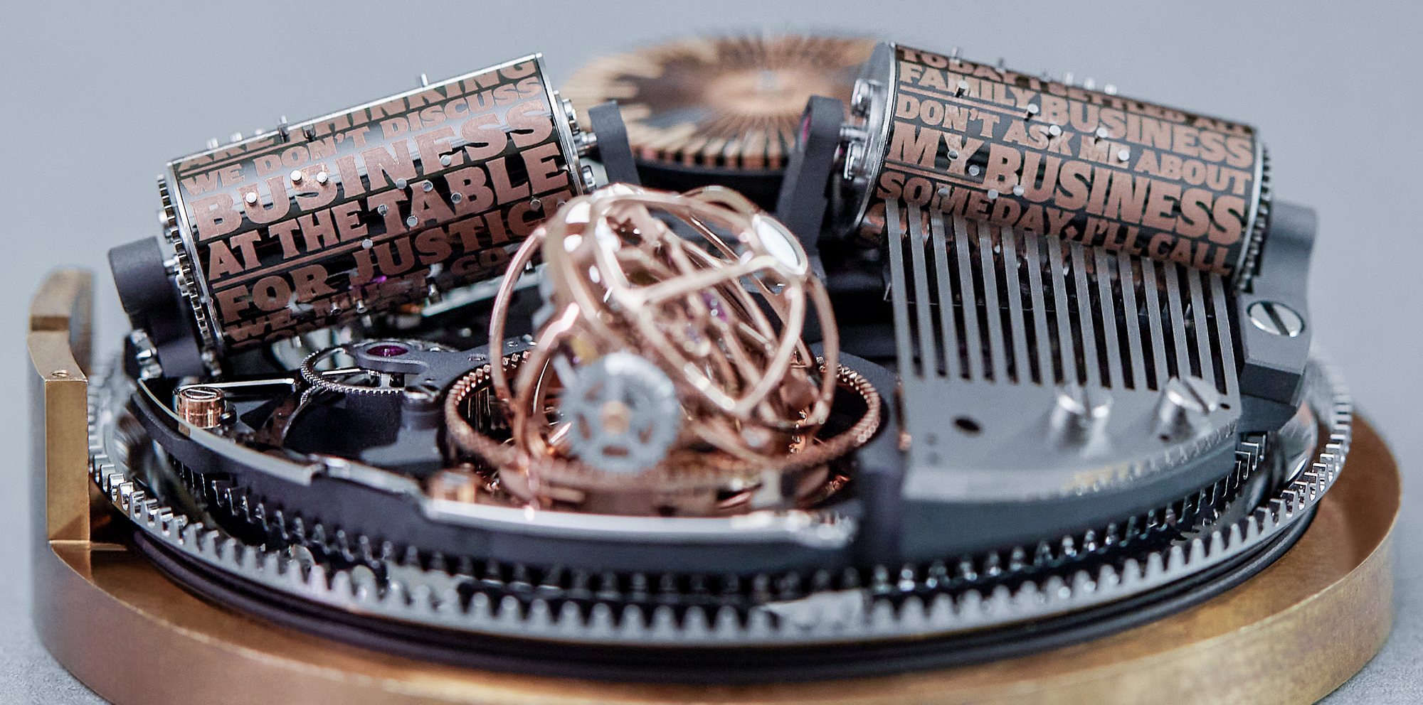 Po drugiej stronie widoczny jest także przycisk wykonany z tego samego rodzaju złota, który uruchamia pozytywki wygrywające motyw przewodni „Ojca Chrzestnego” za pomocą dwóch grzebieni mających łącznie 36 zębów, co pozwala dzięki wypustkom na wałkach zagrać melodię o 120 nutach. Tak skonstruowany mechanizm ma 658 części, 42-godzinną rezerwę chodu i pracuje z częstotliwością 21 600 wahnięć balansu na godzinę.