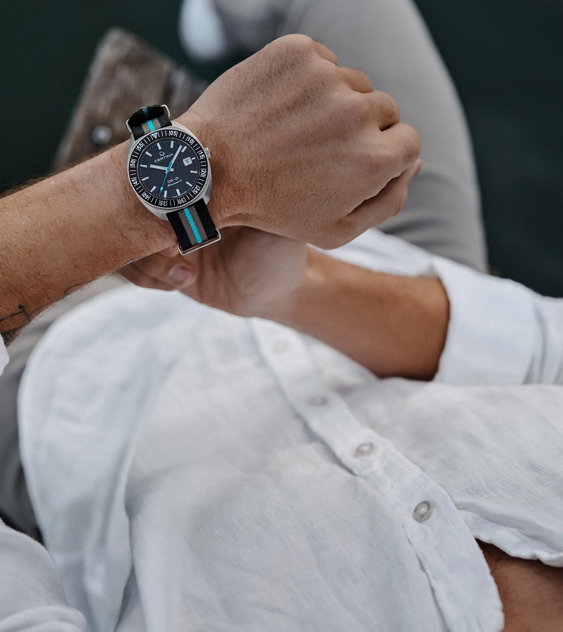Wygląd i parametry zegarka Certina DS-2 Turning Bezel, ale również zastosowanie #tide ocean material wskazują na to, że Certina DS-2 ma wyraźny związek z żywiołem wody.