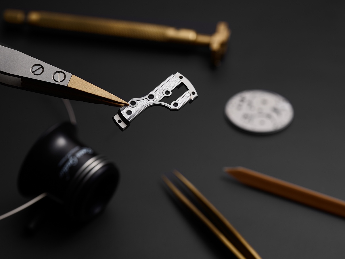 W centrum uwagi znajdują się mostki palcowe – historycznie typowe dla wyrobów z Vallée de Joux, miejsca urodzenia Romaina – ale tutaj zinterpretowane we współczesny sposób. Na początek te mostki są ustawione poziomo i mają „schodkowy” kształt – widywany wcześniej na niektórych mostkach mechanizmów stosowanych w zegarkach Romaina Gauthiera Logical One – który nie tylko zapewnia ich wizualną objętość i głębokość, ale także daje poczucie, że mostki dosłownie płyną po zębatkach i kole balansowym, bez wyraźnego końca.