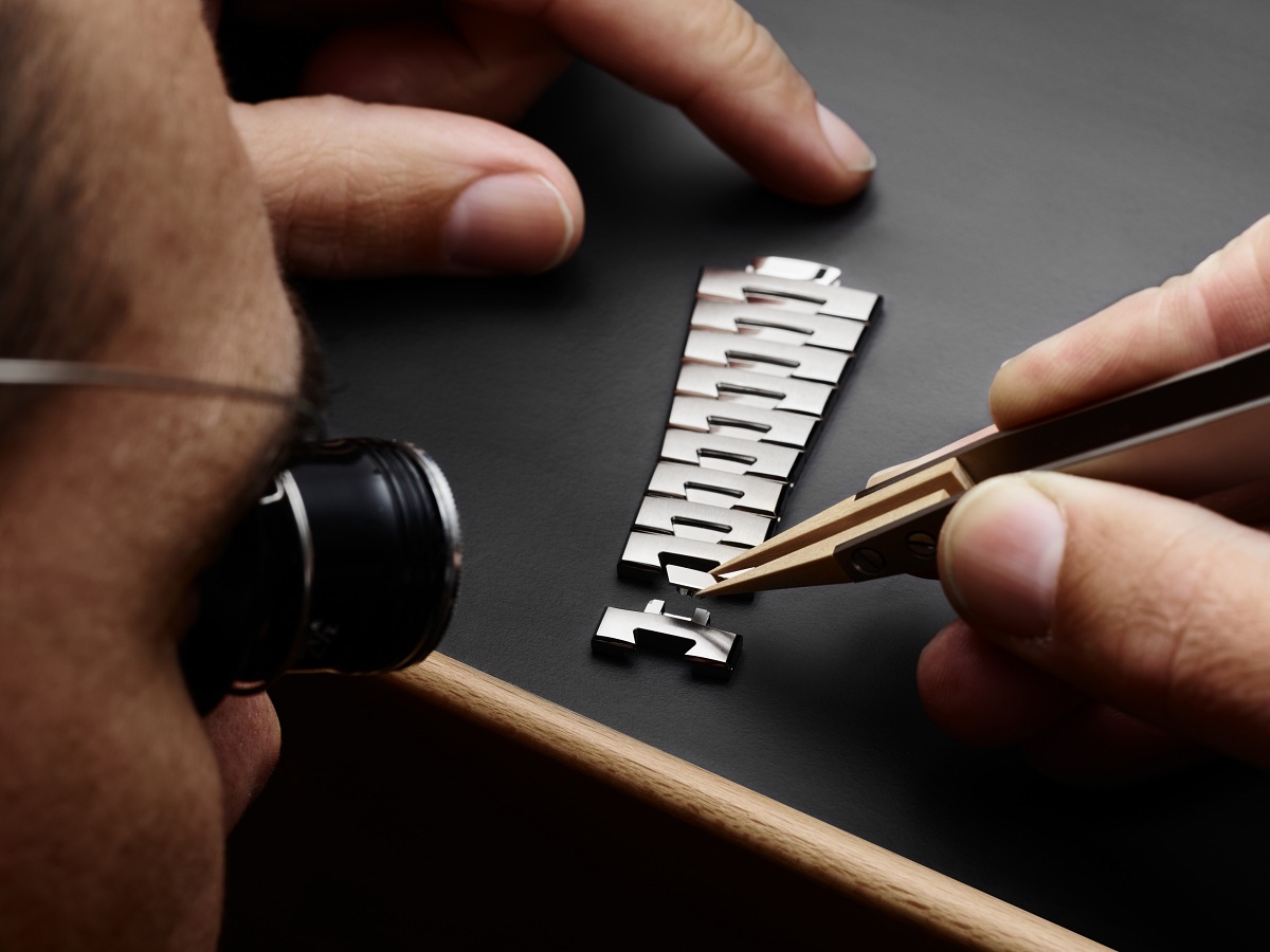 Zgodnie z wizją Romaina – Ewolucja tradycji – ten nowy techniczny i współczesny element wymaga wysokiego poziomu rzemiosła i ręcznego wykończenia. Każde ogniwo składa się z ręcznie polerowanych i satynowanych powierzchni, które tworzą piękną grę światła.