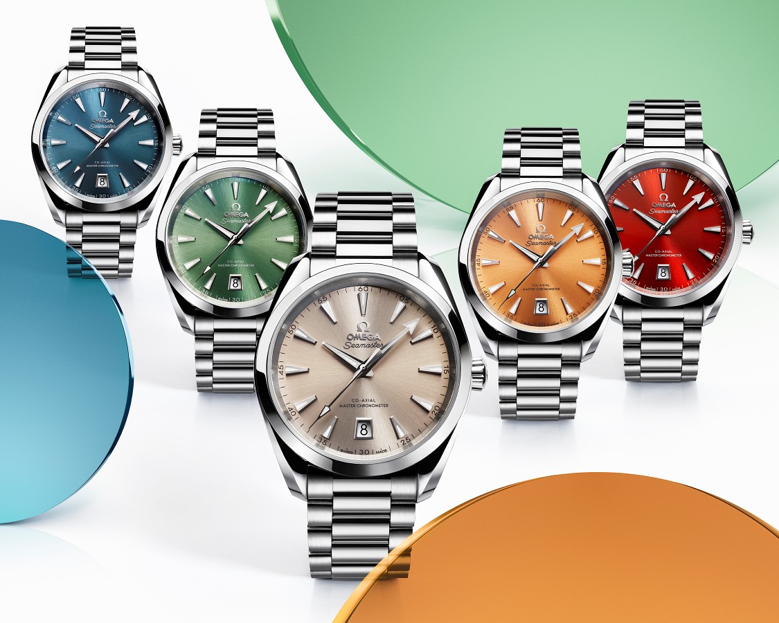 Trendy w zegarmistrzostwie wyznaczają zazwyczaj ci „najwięksi”, marki takie, jak chociażby Omega. Zegarki zaprezentowane w najnowszej kolekcji Aqua Terra Shades to dowód na to, iż w branży moda na kolory ma się doskonale, trwa w najlepsze i - ku radości wielu osób - będzie urozmaicać, ale także ożywiać nam codzienność. W ubiegłym, 2022 roku Omega zaprezentował już tego typu kolorowe nowości, opisywaliśmy je tu - Omega Seamaster Aqua Terra 150M. Można było wybierać zegarki z kopertami o większej średnicy, mierzącej 38 mm, z tarczami w kolorach atlantyckiego błękitu, zatokowej zieleni, piaskowca, szafranu lub terakoty. W równocześnie pokazanych modelach typowo damskich – z kopertami o średnicy 34 mm - wybór tarcz obejmował odcienie morskiego błękitu, zieleni laguny, piaskowca, muszlowego różu i lawendy. Te większe zegarki oferowały jaskrawsze, bardziej wyraziste kolory. Mniejsze - raczej stonowane, bardziej pastelowe.