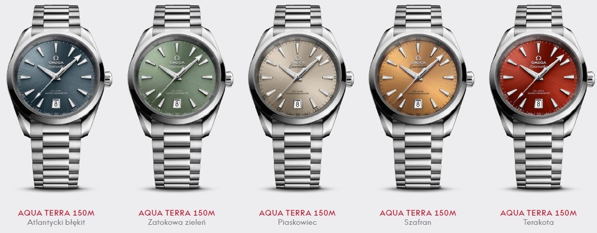 Jak pisze marka - kolekcja Aqua Terra Shades zabiera tradycyjne zegarmistrzostwo Omegi w nowym, pełnym pozytywnej energii kierunku. I faktycznie, dzięki bogatemu wyborowi barw i odcieni tarcz zegarków, nowe wersje czasomierzy to szansa dla każdego, by wyrazić swój styl w najlepiej dobranym kolorze. Inspiracją dla szerokiego spektrum barw w kolekcji było zróżnicowane środowisko naturalne, tak w morzu jak i na ziemi.