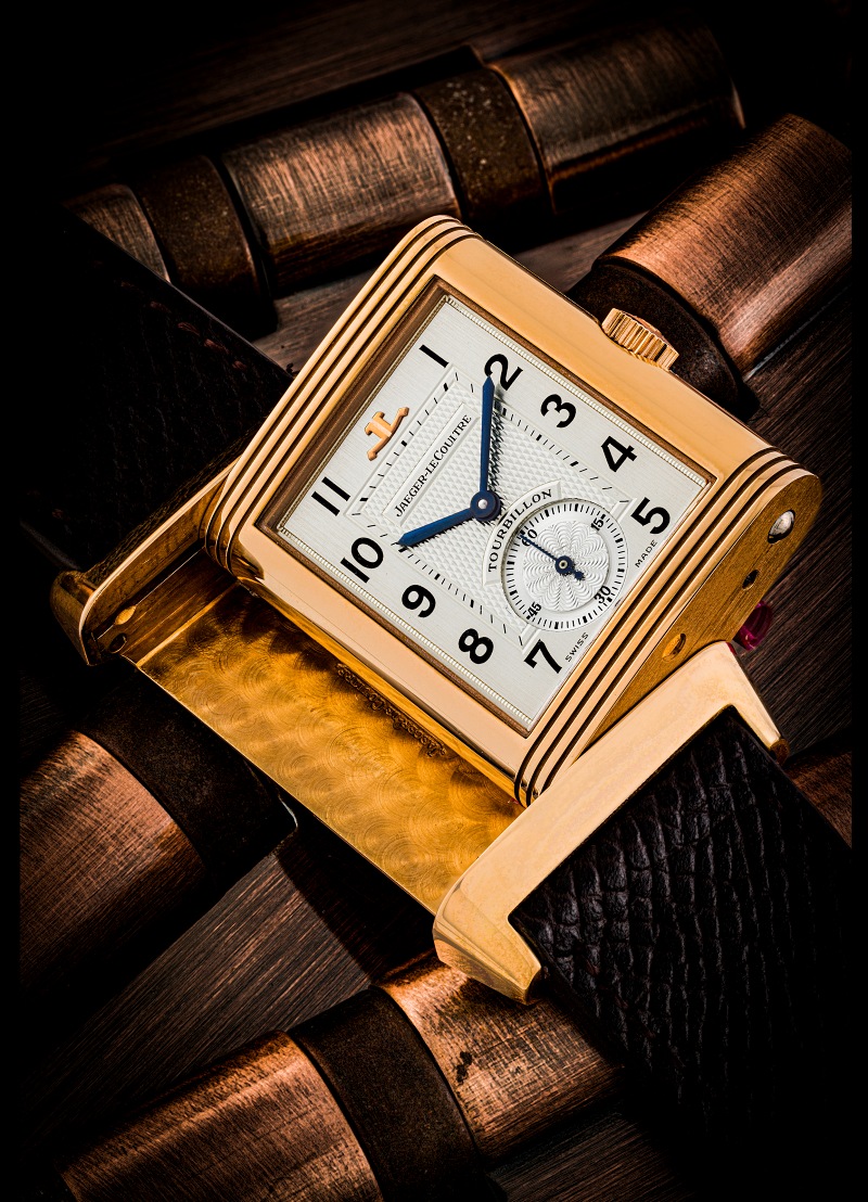 Jaeger Le-Coultre z obrotową kopertą wykonaną z 18-karatowego żółtego złota.