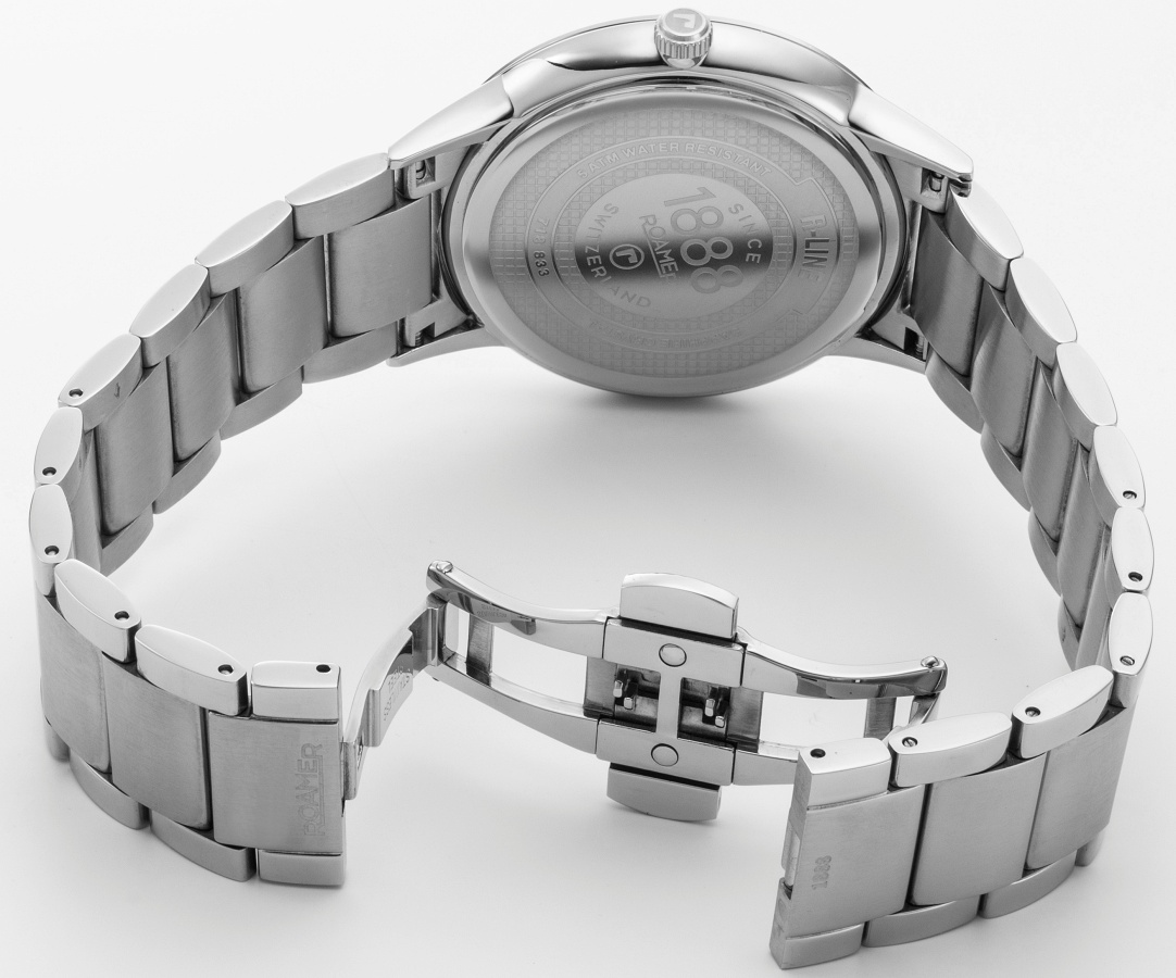 Kształt obudowy to ponadczasowa klasyka w eleganckim, lekkim wydaniu. Z okrągłej koperty wypuszczono bardzo delikatne uszy. Są one średniej długości i zwężające się ku końcom, a od koperty odchodzą z wyraźnym odcięciem. Zegarek otrzymujemy na stalowej bransolecie o trójrzędowej konstrukcji. Sercem zegarka jest mechanizm kwarcowy Ronda 515.