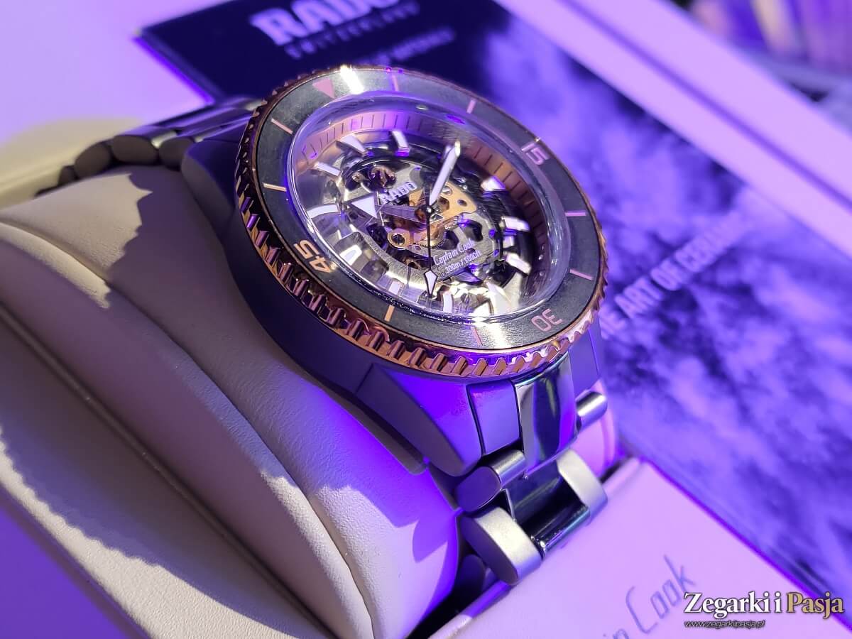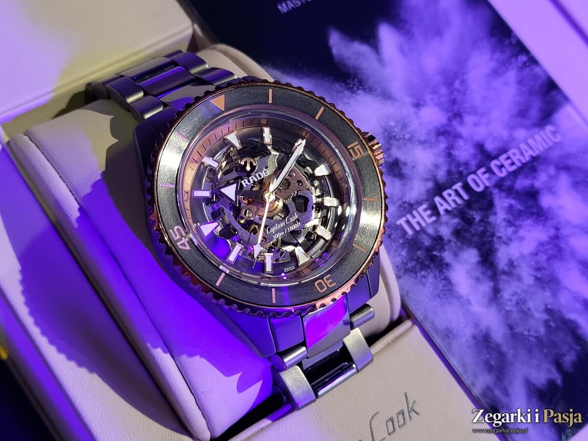 Po sąsiedzku do gablot z różnymi wersjami modelu DiaStarami znajdował się Rado Captain Cook w dwóch wersjach kolorystycznych. Obie jednak bazowały na całkowicie ceramicznej konstrukcji i obie posiadały szkieletowane tarcze.