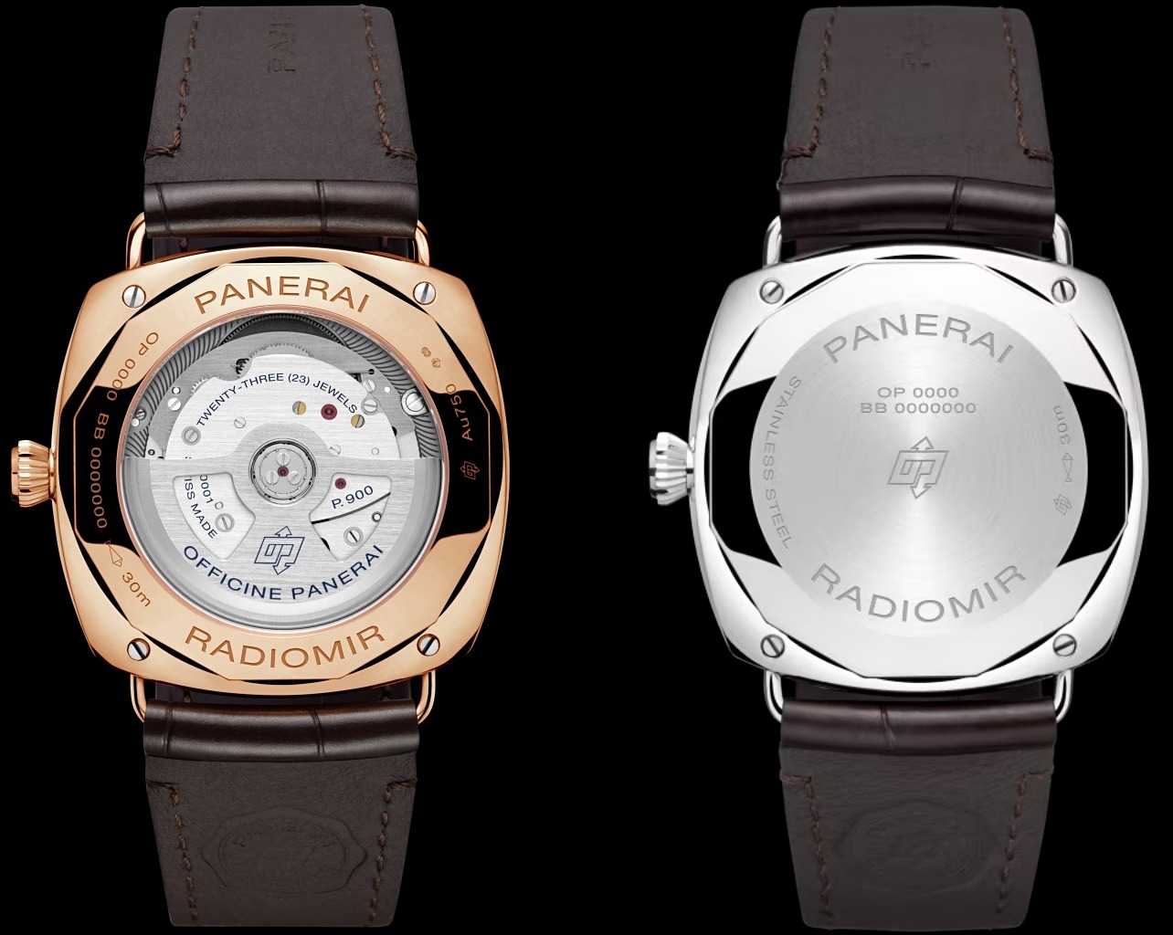 Niezależnie od wybranej wersji, nowe zegarki z serii Panerai Radomir Quaranta mają koperty wodoszczelne do 50 metrów. To relatywnie nieduża wartość jak na model z podwodną historią, zakręcaną koronką i pełnym deklem w stalowych odmianach.