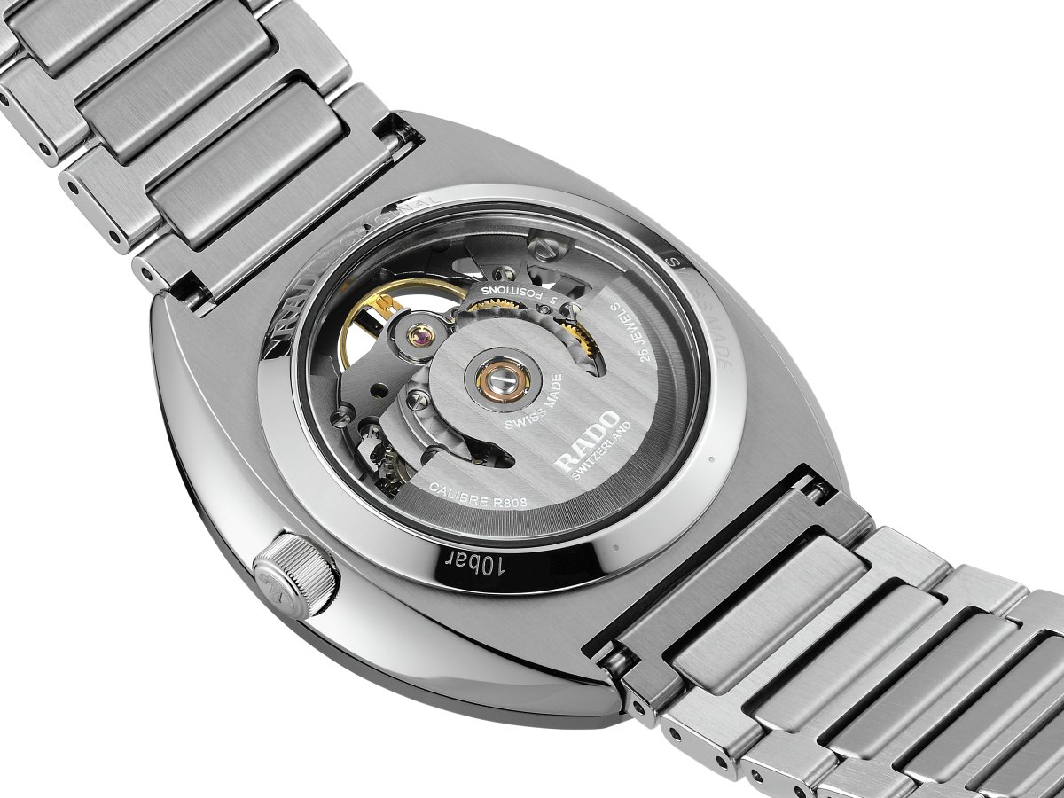 Teraz model Rado DiaStar Original Skeleton będzie oferowany z mechanizmem R808, który jest mocno ażurowany jeśli chodzi o płytę, mostki i inne jego elementy. Ponadto, wiele z nich ma nałożoną antracytowo-szarą powłokę podnoszącą wizualną atrakcyjność całości kompozycji z racji lepszego uwidocznienia mechanizmu wystawionego na widok.