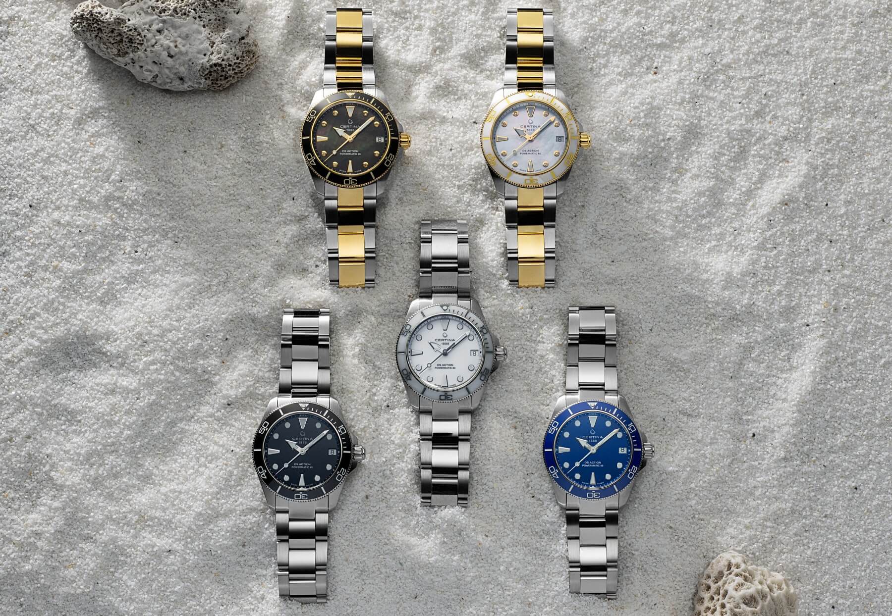 Mimo tej samej bazy, same zabiegi stylistyczne dały w efekcie dwa zegarki dla kobiet i trzy warianty uniwersalne. Łączy je podobny wygląd, świetne parametry techniczne, w tym także ten najważniejszy dla zegarka nurkowego, czyli wodoszczelność do aż 300 m.
