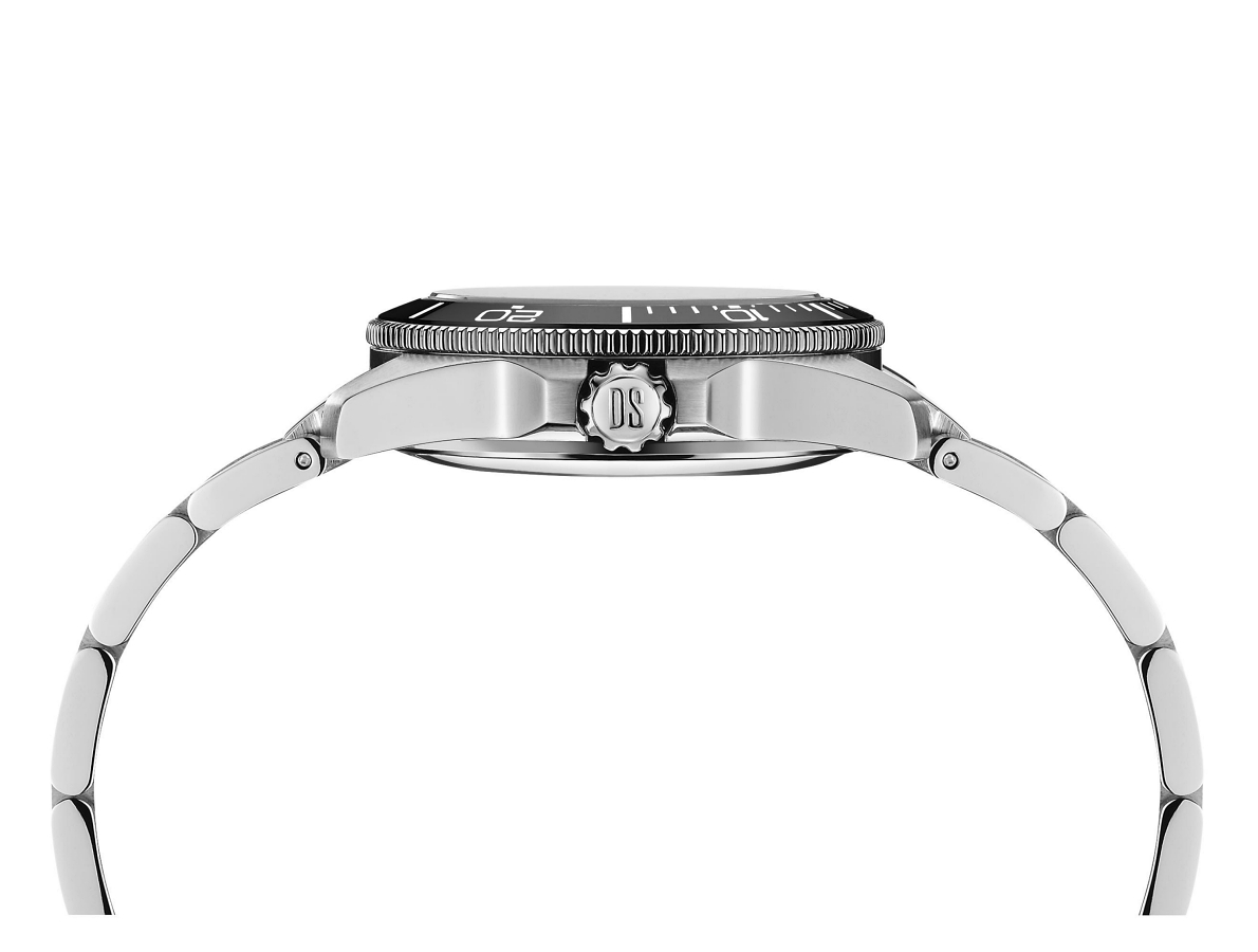 Nowa Certina DS Action 34,5 mm ma wyraźnie „diverowy”, morski klimat, któremu towarzyszą wszelkie praktyczne aspekty związane z precyzją i niezawodnością, czyli po prostu możliwością wykorzystania go podczas kontaktu z wodą. To nowoczesny zegarek, przyciągający uwagę efektownym zestawieniem kontrastujących ze sobą cech: niewielka średnica koperty w żaden sposób nie umniejsza dynamicznemu, sportowemu charakterowi jaki wypracowany został przez dotychczasowe, większe modele z serii DS Action.