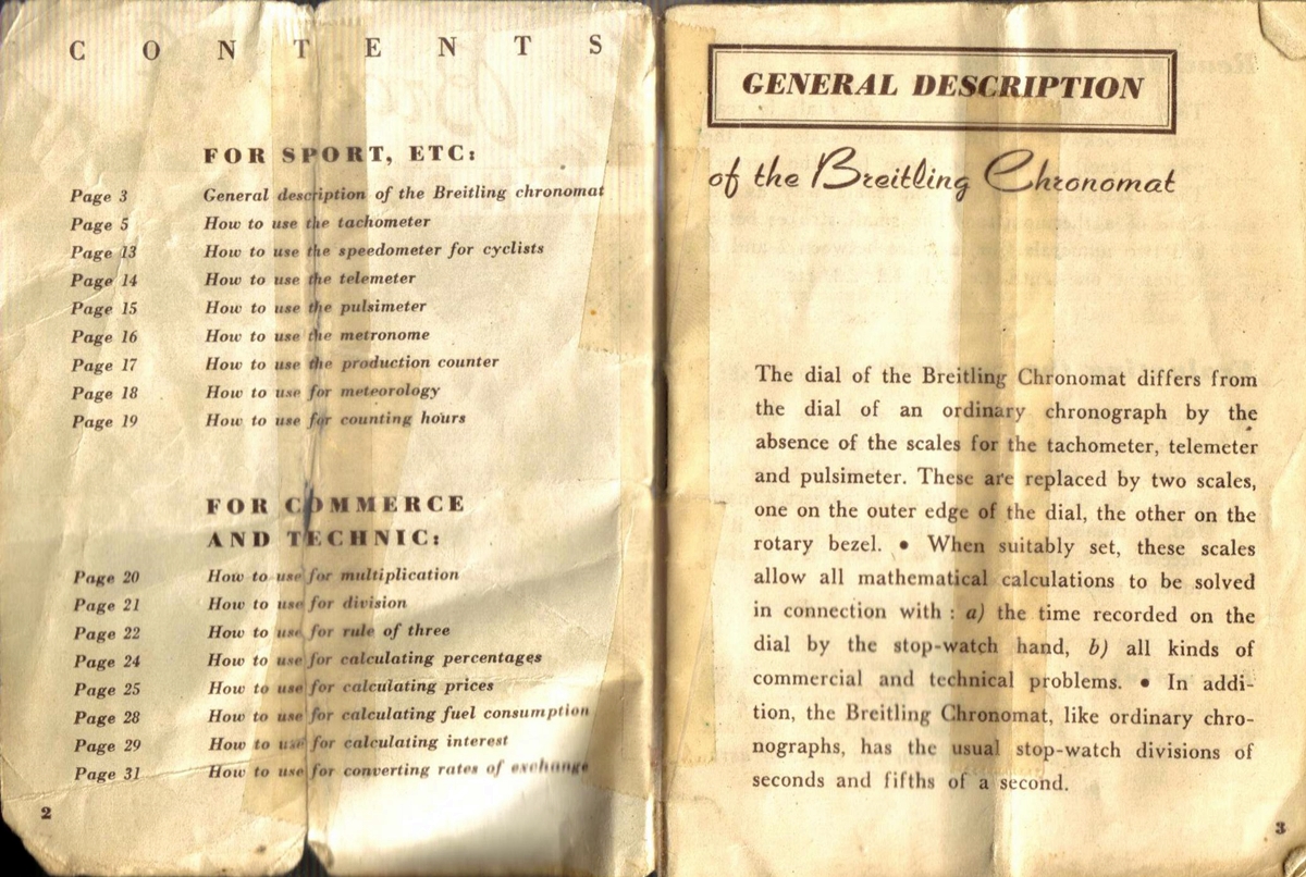 Powyżej strona tytułowa i 1 strona instrukcji, w linku poniżej załączam skany oryginalnej instrukcji do Breitlinga Chronomat, ze szczegółowym wyjaśnieniem (przykładami) sposobu działania poszczególnych funkcji.
