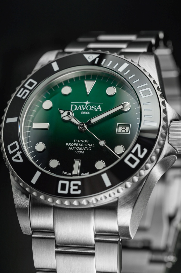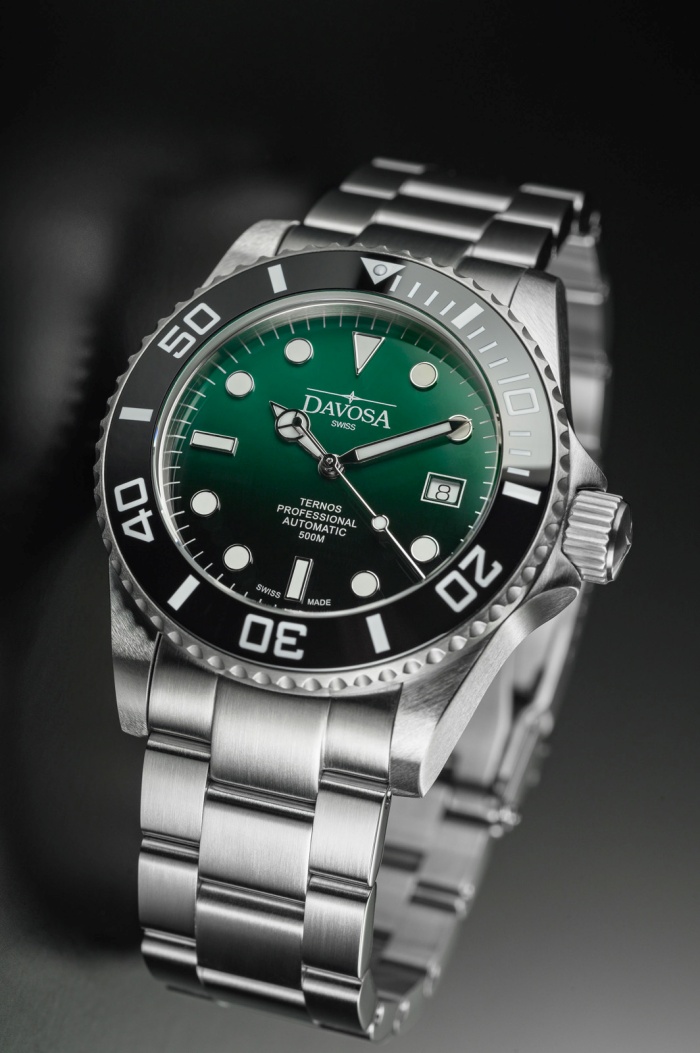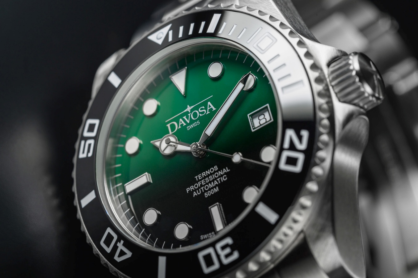 Dlatego Davosa ze swoją tegoroczną nowością odnosi się do widoków prosto spod grubej tafli lodu, wprowadzając na rynek nową odsłonę popularnego divera, tym razem z tarczą w kolorze głębokiej zieleni. Samo postrzeganie barwy cyferblatu również nie jest jednoznaczne, bowiem jego powierzchnia zmienia się od wspomnianej wcześniej głębokiej zieleni aż do czerni.