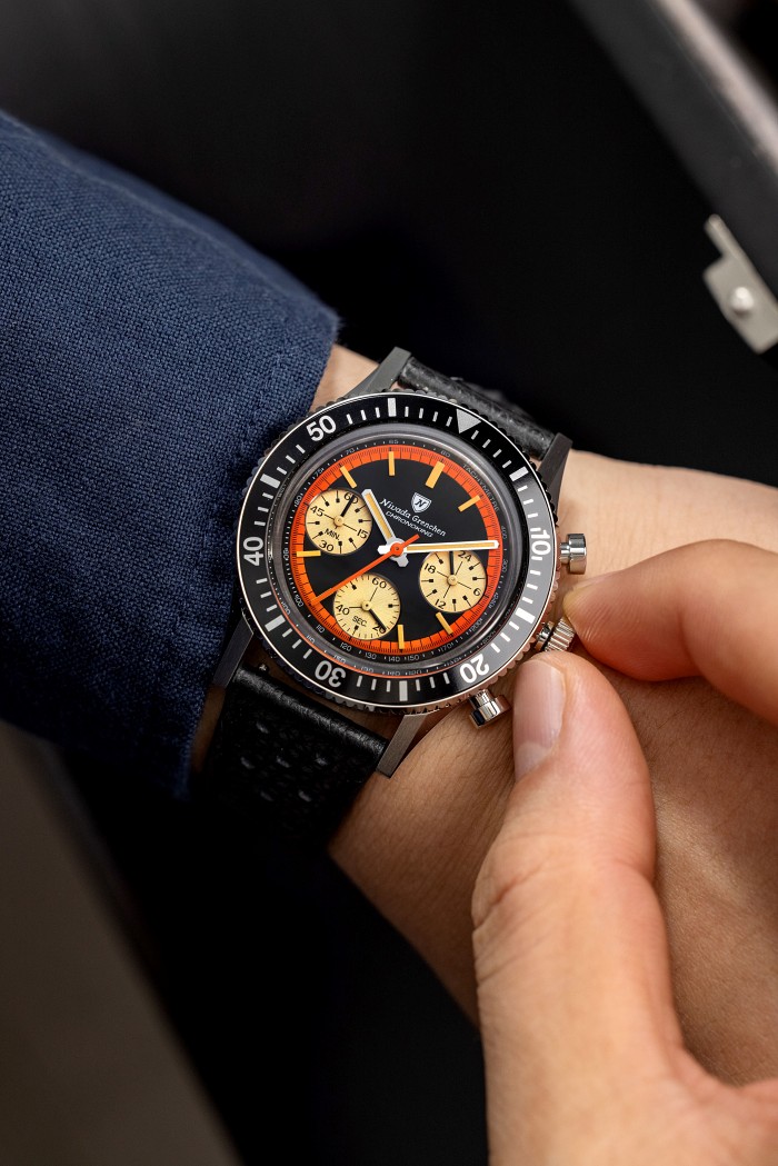 Na potrzeby tej reedycji marka Nivada Grenchen pracowała nad nową wersją swojego legendarnego Chronomastera, zainspirowaną starą tarczą Chronoking z lat siedemdziesiątych. Pierwotnie, ten model z małymi subtarczami w stylu „Paul Newman” miał zastosowaną kopertę typu tonneau, a tradycyjne mechaniczne serce stanowił mechanizm Valjoux 72.