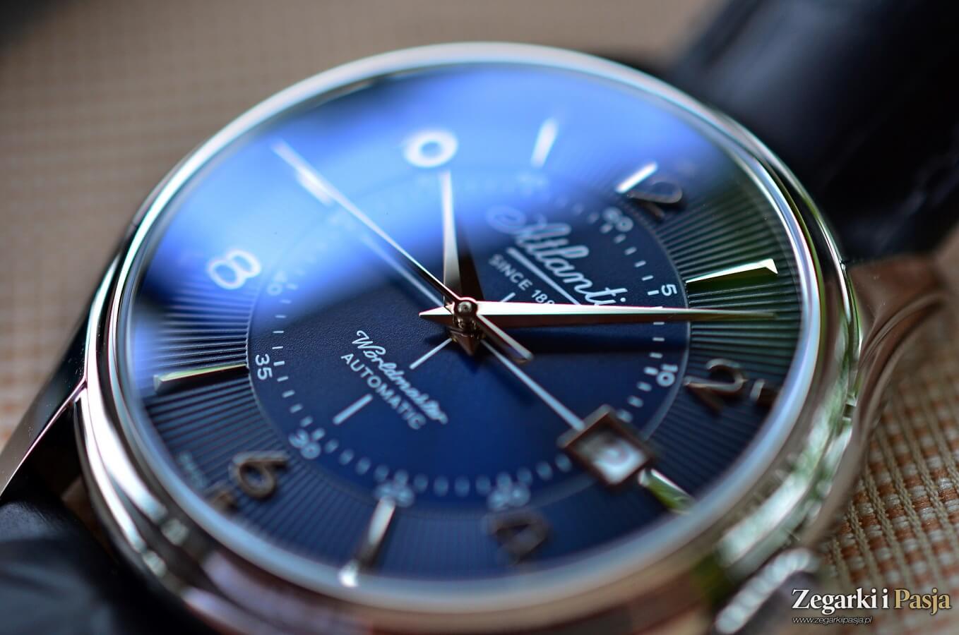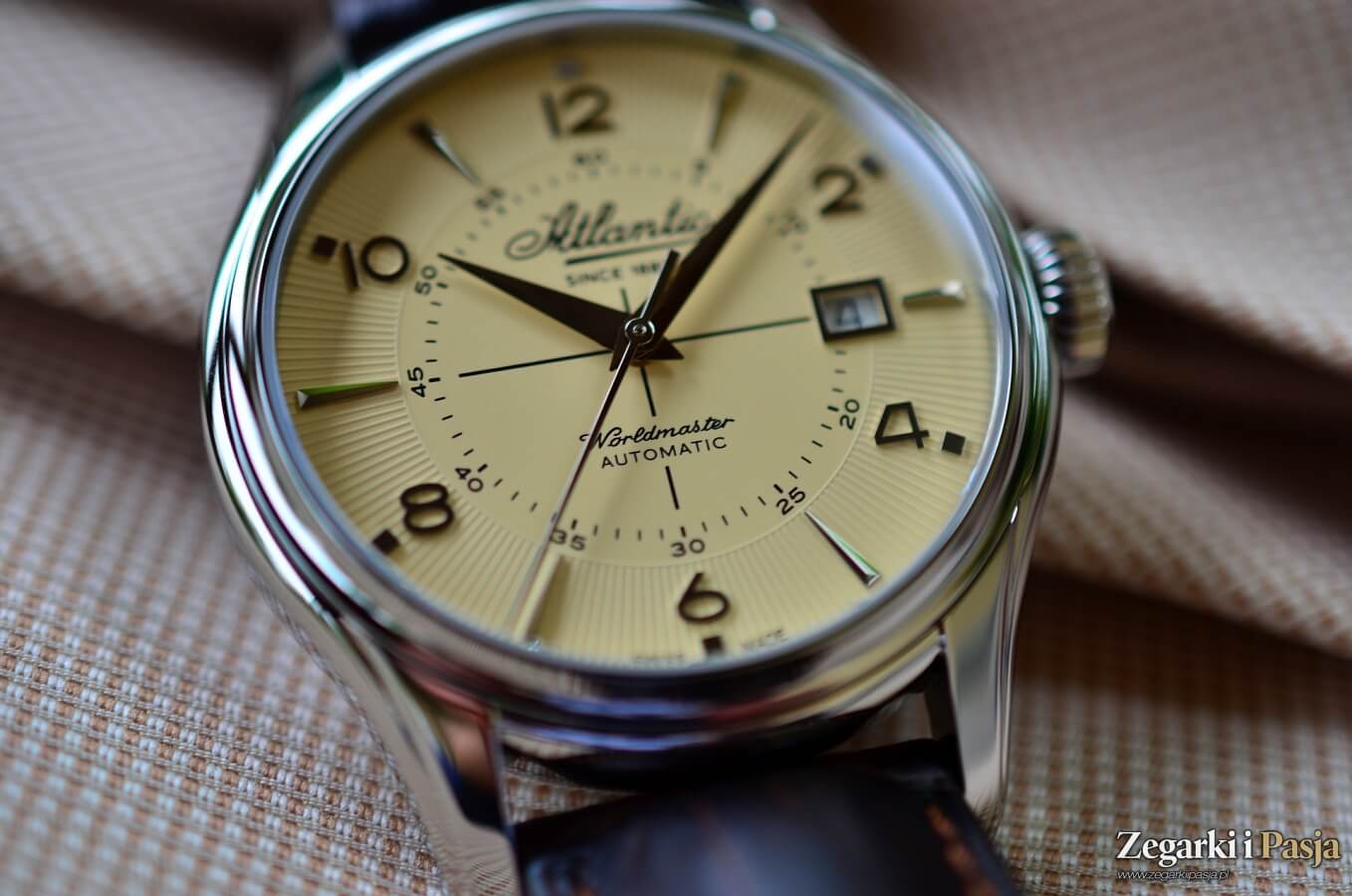 Stonowany rozmiar koperty, klasyczny kształt, gładkie, polerowane powierzchnie to przepis na sukces w zakresie formalnego zegarka. W Atlantic Worldmaster Automatic dochodzi wspomniana na wstępie legenda i kolejny element, kluczowy dla odbioru zegarka, czyli tarcza.