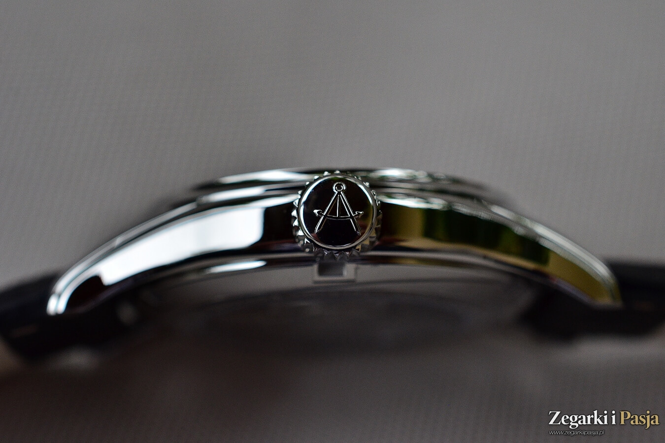 Bo choć to jest model elegancki, to nie zupełnie minimalistyczny, gdyż mamy tu sporo różnych detali. A na pewno ten podstawowy kierunek podkreśla fakt, że wszystkie powierzchnie koperty zostały wykończone poprzez polerowanie na wysoki połysk. Linie są łagodne, delikatnie zaokrąglone, podkreślając charakter zegarka. Nie ma tu ostrych cięć, wyrazistych krawędzi. Wszystko jest delikatne i spokojne. Kopertę oceniam i odbieram jako dopieszczoną, a co ważniejsze - oferującą naprawdę dobrą jakość wykonania.