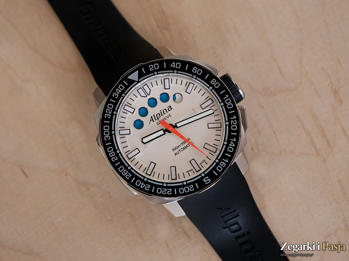 Jak już wspominałem, szwajcarska marka Alpina była sponsorem Team Niceforyou Extreme 40, i właśnie z tej okazji przygotowała bardzo udany – w mojej ocenie - model Extreme 40 Sailing Chronograph o ref. AL.-880LS4V6, który użytkuję od lat. Żeglarski zegarek mechaniczny typu yacht timer. Mimo paska, a w zasadzie jego zapięcia, o którym wspominałem, model ten sprawdza się doskonale podczas sportów wodnych, ale także służy mi po prostu jako wierny kompan na co dzień.
