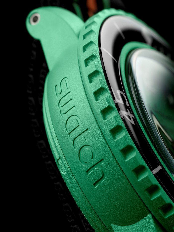 Wokół bioceramiki narosło sporo kontrowersji, malkontenci najczęściej mówią o plastiku, więc wyjaśnijmy jeszcze, co to za materiał. Otóż Bioceramic® to opatentowany przez firmę Swatch wytrzymały i jednocześnie miękki materiał składający się w 2/3 z ceramiki zaś w 1/3 z tworzywa pochodzenia biologicznego, będącego pochodną oleju rycynowego, pozyskiwanego z rącznika pospolitego.