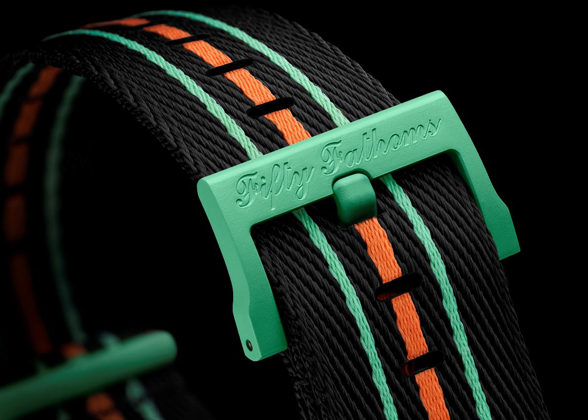 Wszystkie warianty Swatch x Blancpain mają paski wykonane z przetworzonych, wyłowionych z mórz zużytych sieci rybackich, których głównym składnikiem jest nylon. Zaś ich szlufki i zapięcia wykonane są z bioceramiki, tak samo jak koperty i koronki zegarków. Oczywiście paski są w kolorach dopasowanych do kopert. Jak na rasowego nurka przystało, luneta obraca się tylko w jedną stronę – jest to zabezpieczenie przed przypadkowym wydłużeniem czasu nurkowania.