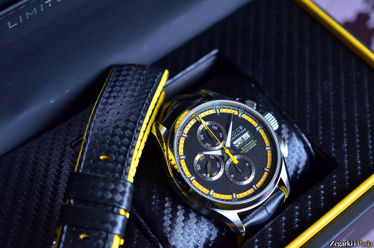 Pod pokrywką kolejny raz mamy logo zawodów, a na dolnej części przedniej ścianki logo Epos. Trzeba przyznać, że kolorystyka zegarka, jaki i głęboka czerń materiałów o fakturze carbonu już na „dzień dobry” fundują zegarkowi bardzo pozytywny odbiór.
