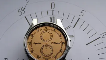 Po przeciwnej stronie jest oczywiście mały sekundnik i - co już mniej oczywiste – datownik w postaci koła miesięcznego, startującego od białej jedynki, którego wskazania realizowane są za pomocą czerwonej wskazówki z anodyzowanego aluminium.