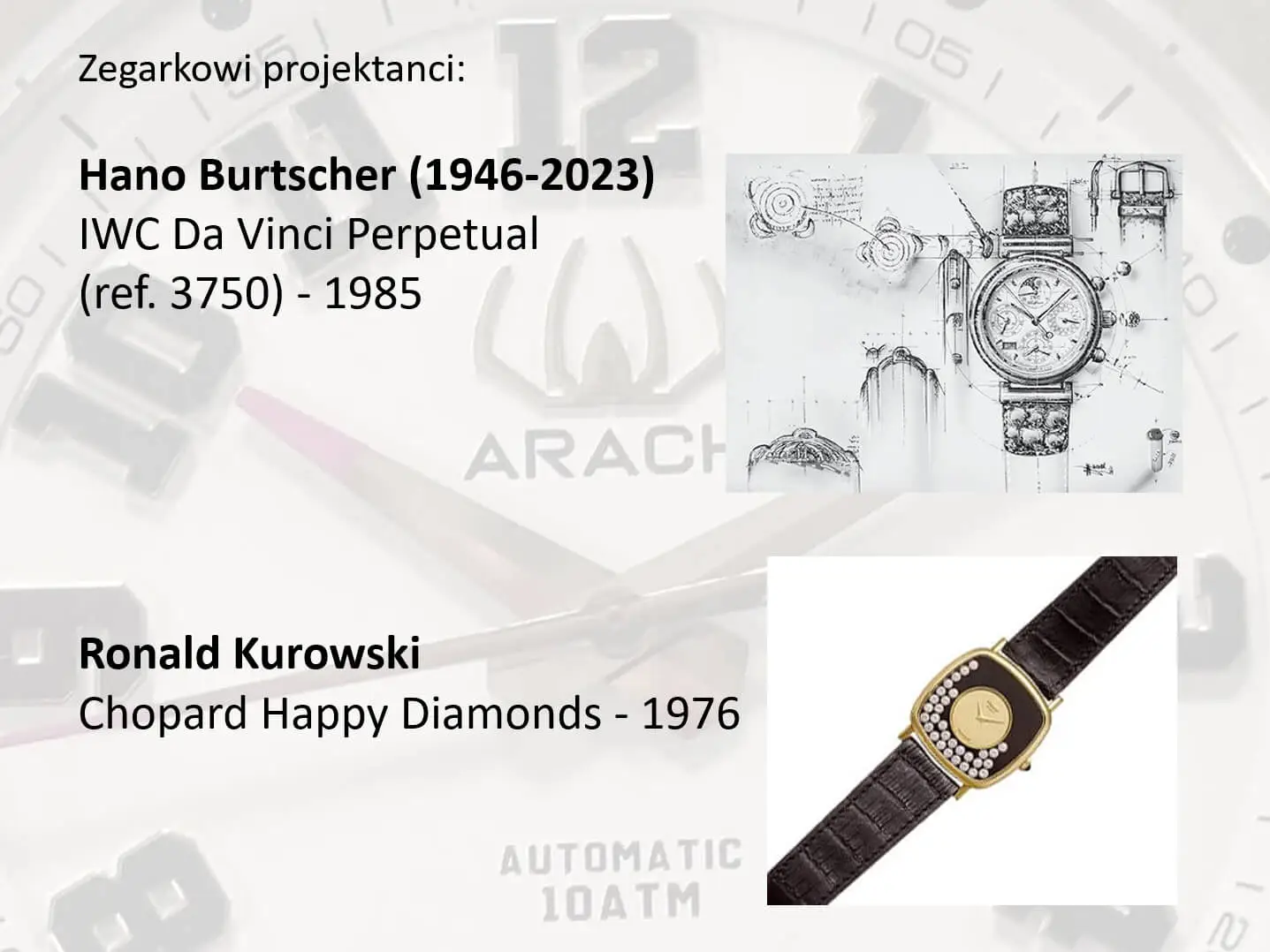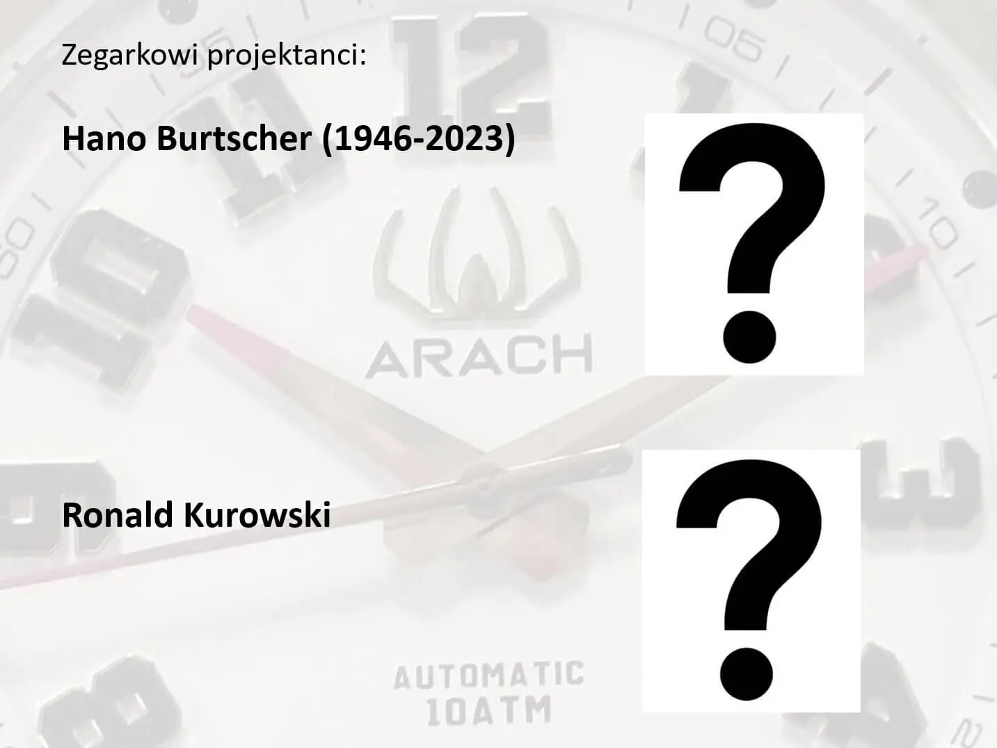 Na kolejnym slajdzie prelegent zaprezentował nazwiska dwóch następnych zegarkowych projektantów, którzy ze swoich danych personalnych wcale nie są szeroko znani w zegarkowym świecie, i to mimo, że są autorami ponadczasowych projektów. Prowadzący zapytał nawet gości, czy znają te osoby?