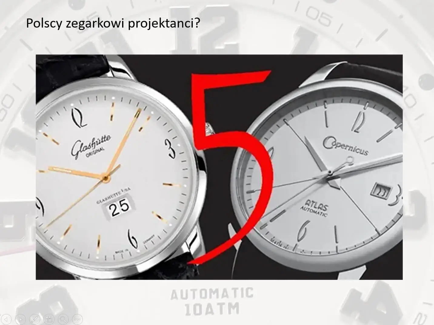 Informację o możliwościach i dokonaniach projektantów polskich zegarków prelegent przekazał porównując dwa, następujące modele zegarków: Sixties Panorama Date, firmy Glashuette Orginal, oraz Atlas, marki Copernicus.