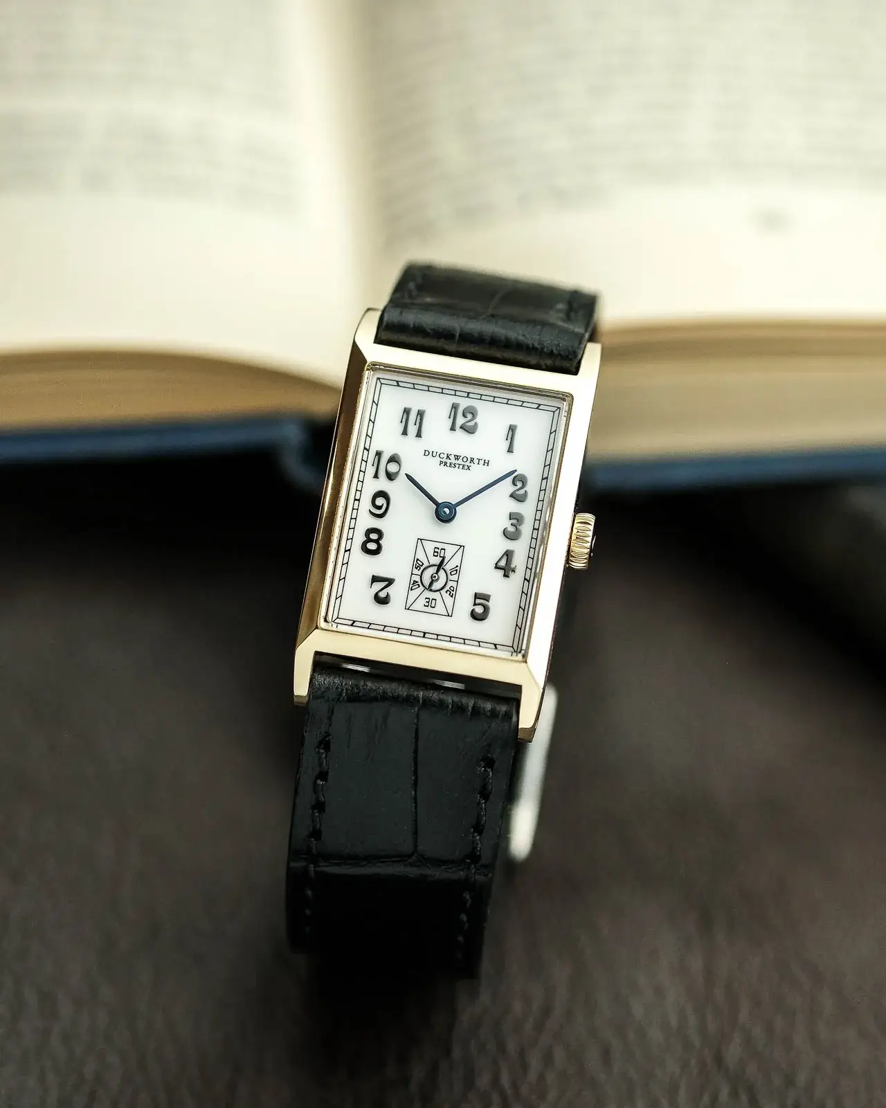 Brytyjski producent Duckworth Prestex zadbał o to, aby nie była to kolejna kopia z mocno powielonym designem, ale zupełnie odrębny projekt, hołdujący klasycznym zegarkom z prostokątnymi kopertami w eleganckiej formie. Centenary ma obudowę o wymiarach: 24 mm x 31 mm, oraz grubości wynoszącej 7,5 mm.