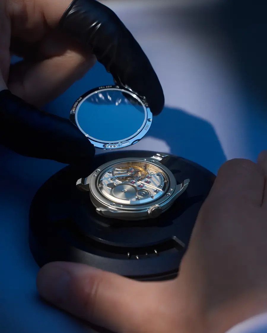 Wykończenie mechanizmu, z ręcznie wykonanym wzorem guilloché i polerowanymi elementami to wyraz przykładania ogromnej wagi do detali. Każdy egzemplarz jest składany i regulowany przez mistrzów zegarmistrzostwa w manufakturze w Le Locle, co gwarantuje najwyższą jakość.