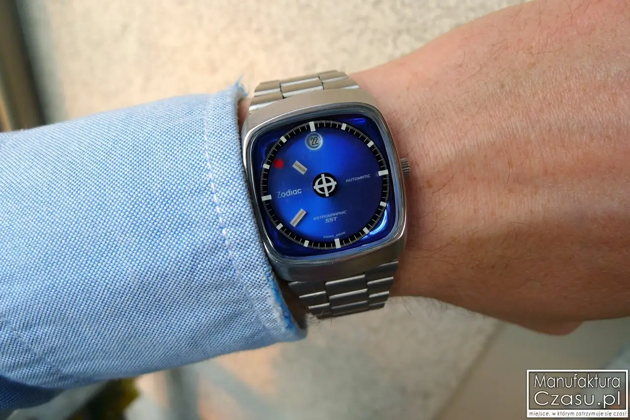 W 1969 roku firma Zodiac zaproponowała zegarek mechaniczny Astrographic SST, w którym widzimy przesuwające się jakby w przestrzeni, lewitujące właśnie znaczniki, pełniące rolę wskazówek minutowej i godzinowej, oraz czerwoną kropkę, która jest odpowiednikiem satelity w prezentowanym dziś zegarku, czyli nietypowego sekundnika.