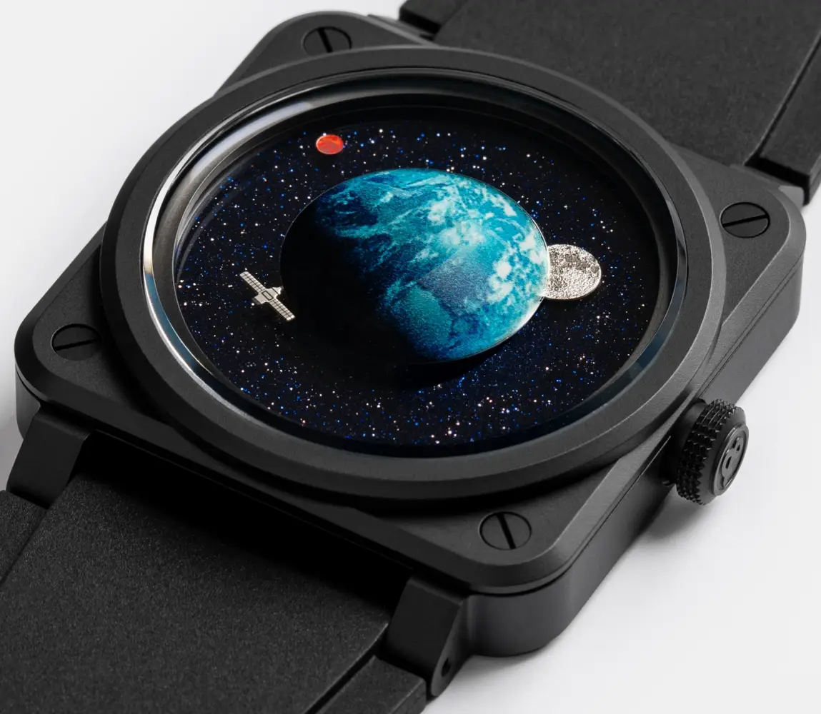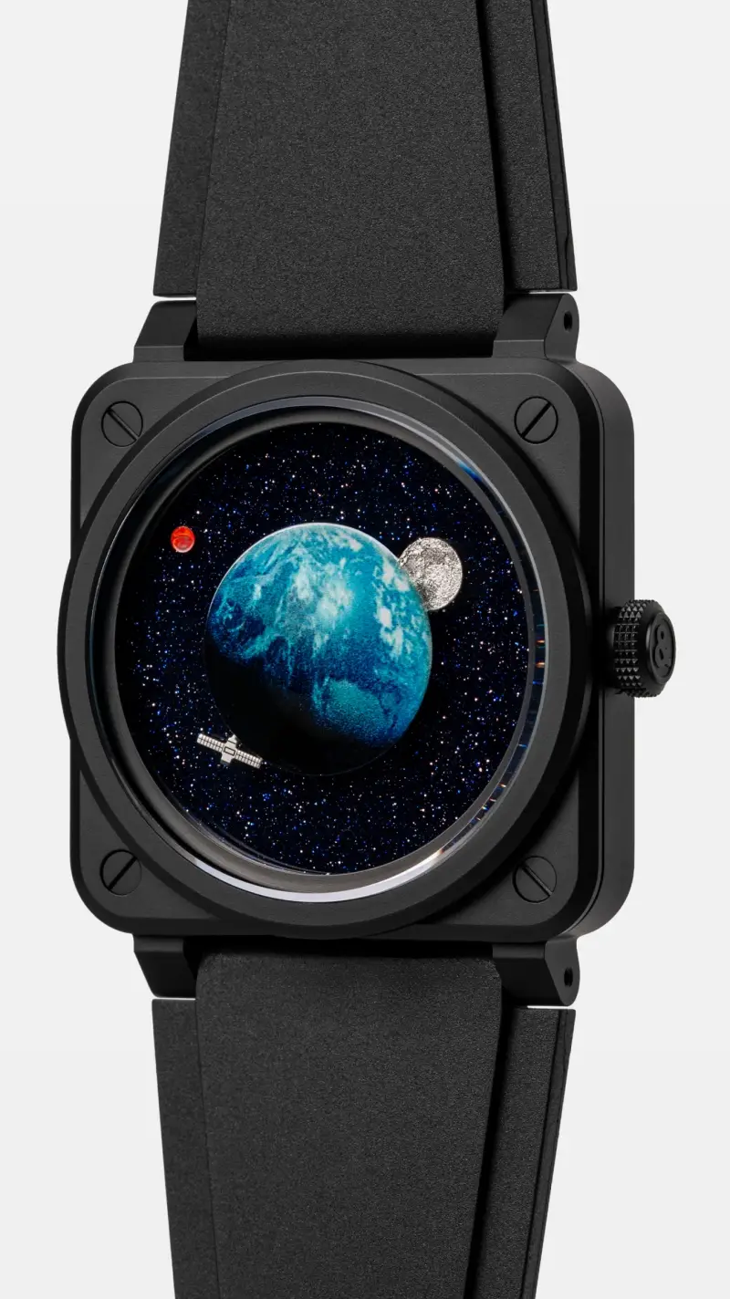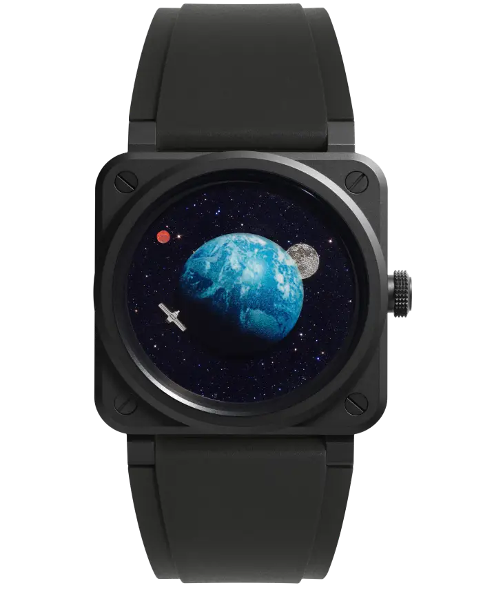 „Wyobraziłem sobie Ziemię widzianą z kosmosu, w symbolicznym ustawieniu z Księżycem i Marsem. Magia tego zegarka tkwi w jego tarczy - nie jako technicznej interpretacji zegarka „narzędziowego”, ale tym razem w wymiarze wyobraźni”, wyjaśnia Bruno Belamich, dyrektor kreatywny i współzałożyciel Bell & Ross.