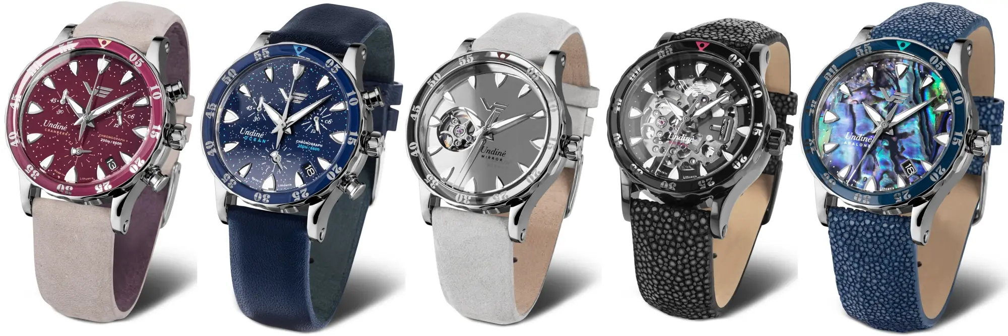 Jednakże firma ma także ciekawą ofertę skierowaną do kobiet, dla nich stworzono kolekcję zegarków o nazwie Undine. W lutym 2025 na targach Inhorgenta w Monachium, kiedy mieliśmy przyjemność gościć z Maćkiem na stoisku marki Vostok Europe, prezentowano nam bardzo atrakcyjne nowości właśnie z tej serii.